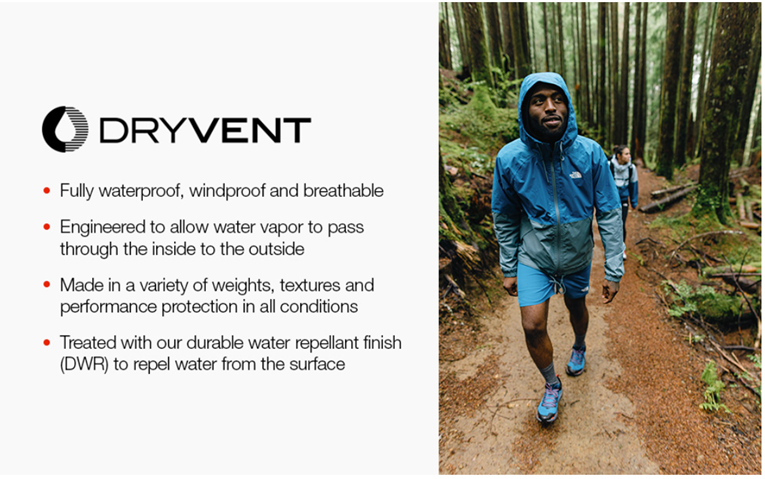 • WATERPROOF FABRIC. Made with DryVent performance tech, this waterproof, windproof and breathable jacket delivers cozy comfort for casual nights or adventure days. Easy to care for and easy to wear, you'll love the effortless look and feel anywhere you go.