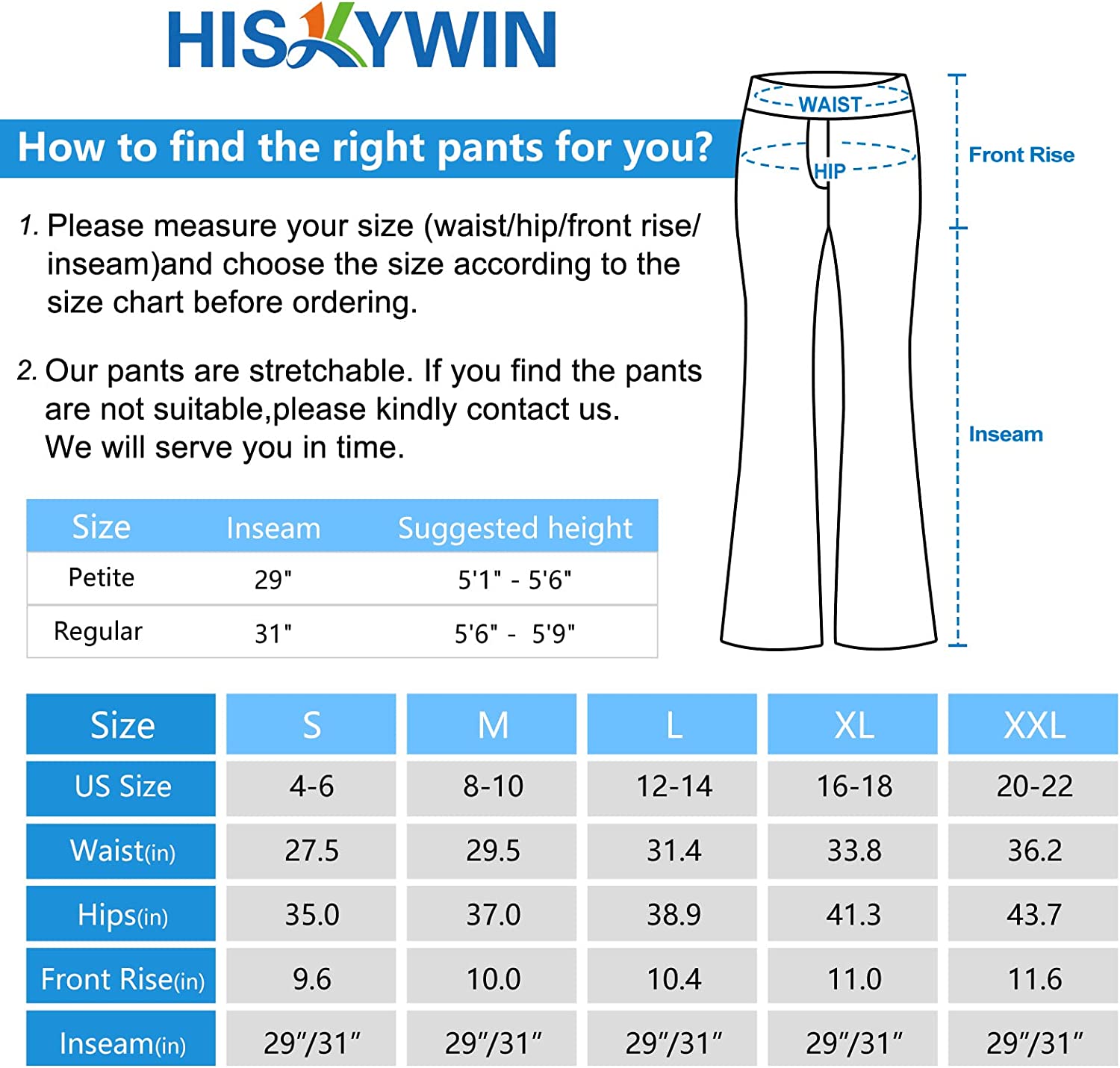 INSEAM LENGTHS: These business work pants feature with 2 different inseam lengths: Petite - 29" inseam fits women 5'1" - 5'6" / Regular - 31" inseam fits women 5'6" - 5'9". Please refer to the size chart shown in the last picture to choose the specific size of pants.