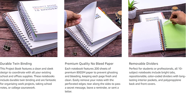 • Absolute Essential: This Project Book features a clean and sleek design to coordinate with all your existing school and offices supplies