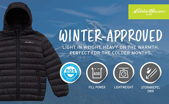 650 FILL POWER DOWN: Responsible Down Standard Certified; Wherever you go, you can count on this kids' winter jacket for fashion and warmth; Perfect for work, going to school, hanging with friends, or spending time with your family; Our puffer winter jacket for girls and boys combines modern fashion with outstanding functionality and convenience