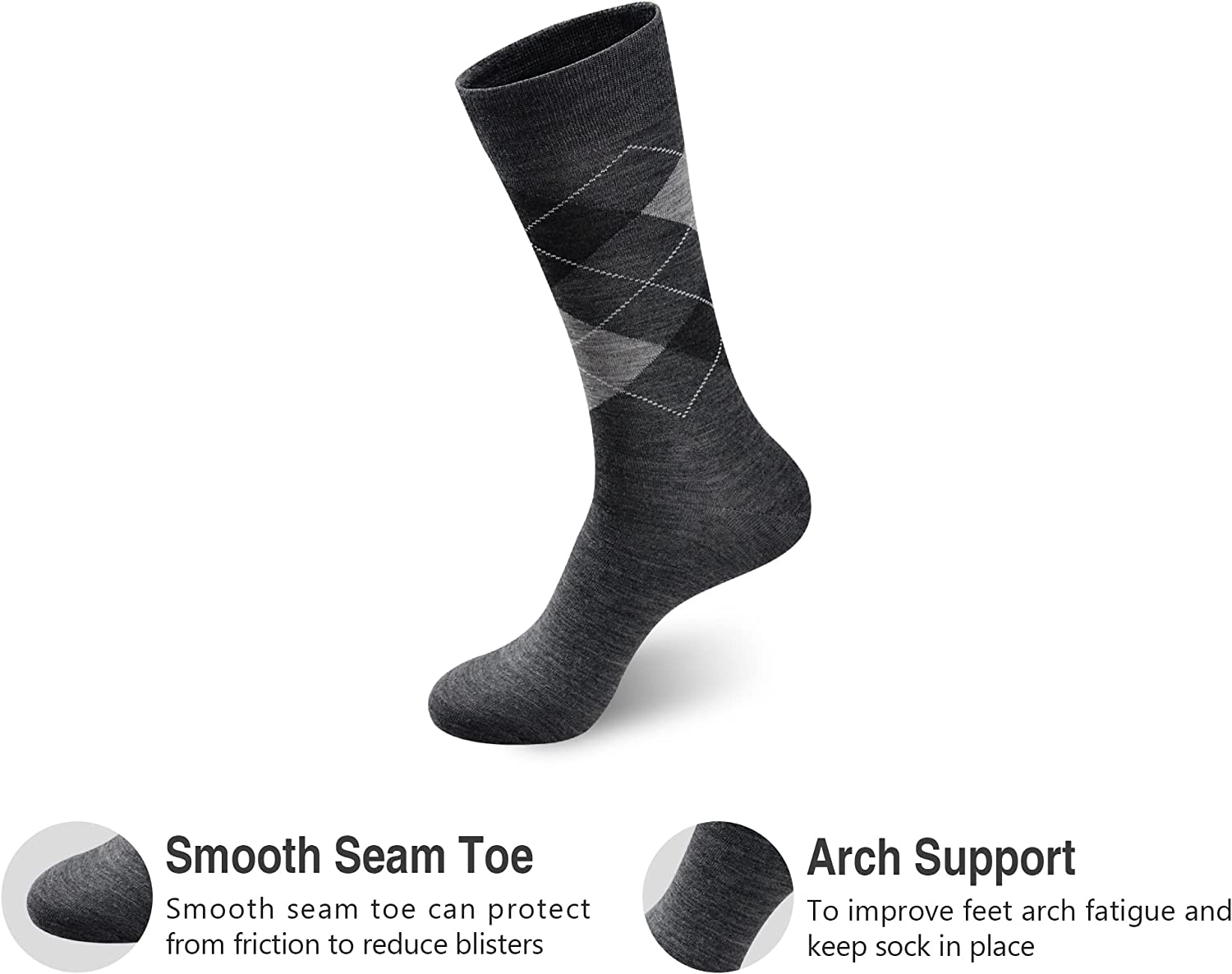 GKX Merino Wool Dress Socks are made of premium merino wool and polyester blend and has good moisture wicking properties to keep your feet dry and fresh.Retain shape even after repeated washings,breathable and elastic. These Socks have variety of color and patterns for your choice, consist of classical and traditional, also have different patterns from strip to argyle, GKX dress socks can also go casual occasions.