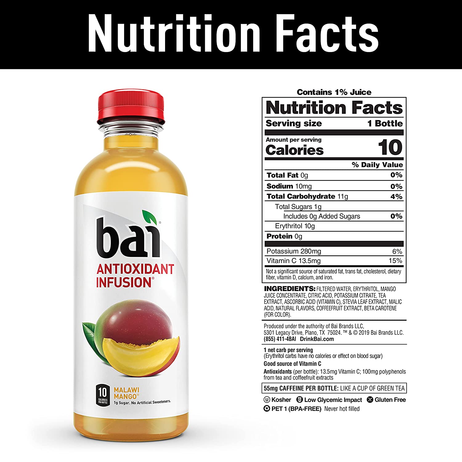 NO ARTIFICIAL FLAVORS OR SWEETENERS: With no artificial flavors or sweeteners, Bai Antioxidant Infusions delivers a refreshing, delicious flavor for those seeking better alternatives to beverages with high sugar and calories