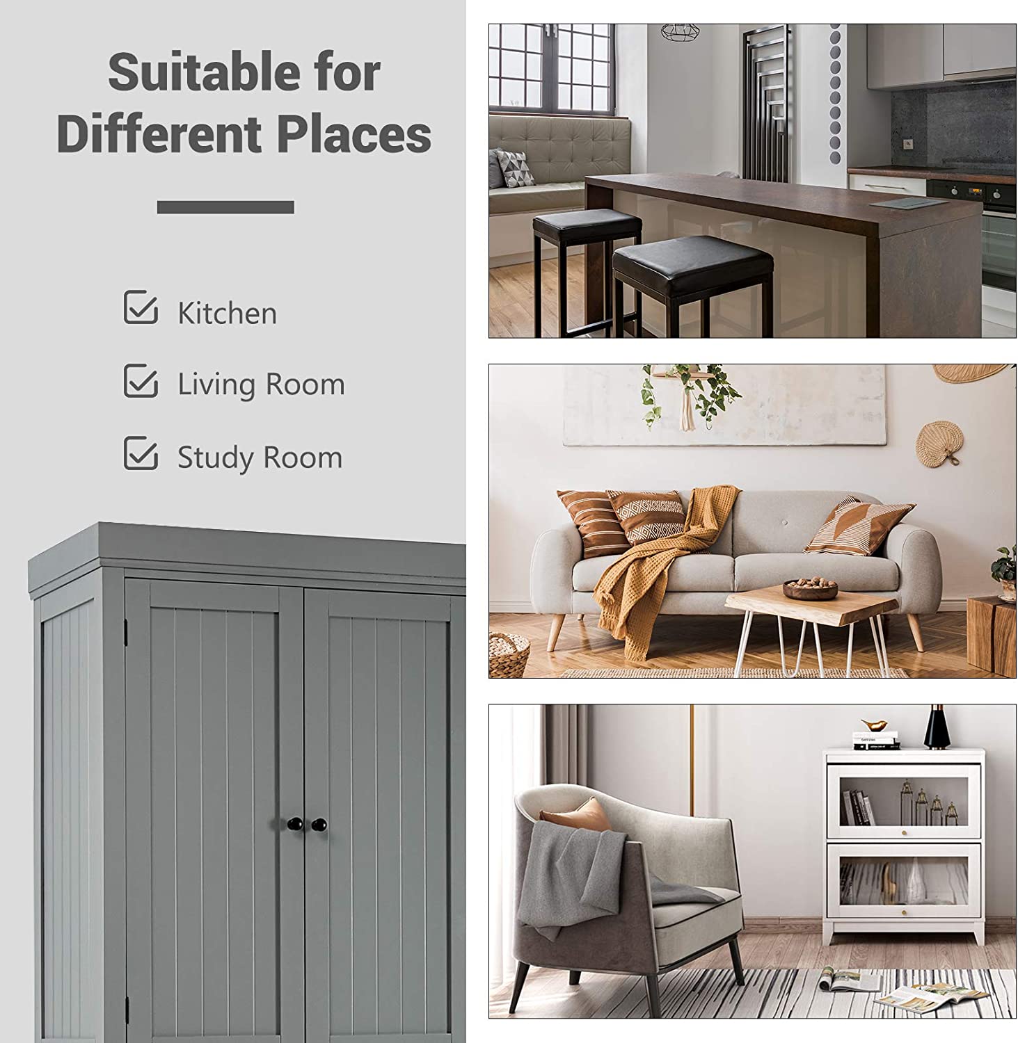⭐【Adjustable Shelves for Different Items】Our cupboard cabinet is equipped with four adjustable sturdy panels, two for each double-door cabinet. Each panel has three height adjustments, so you can adjust the position for different items. These four panels can also be detached individually.