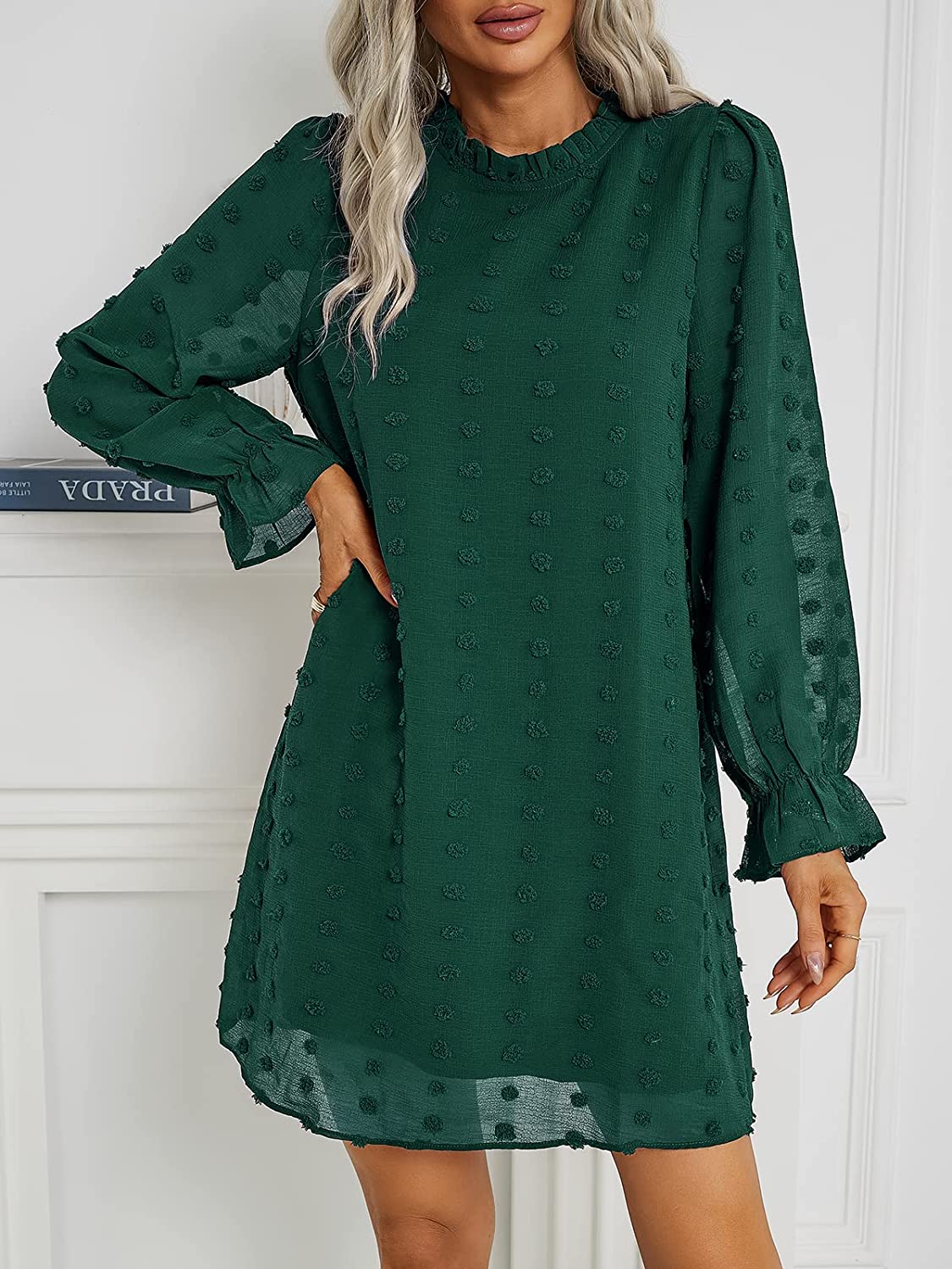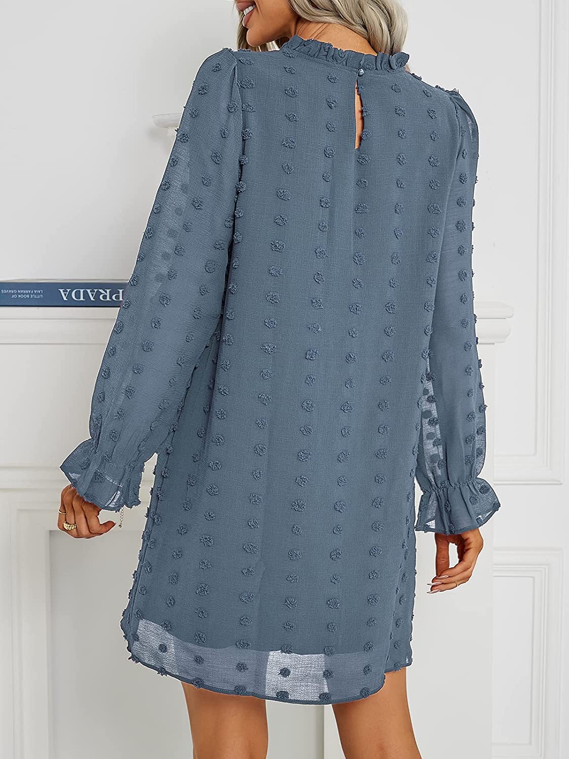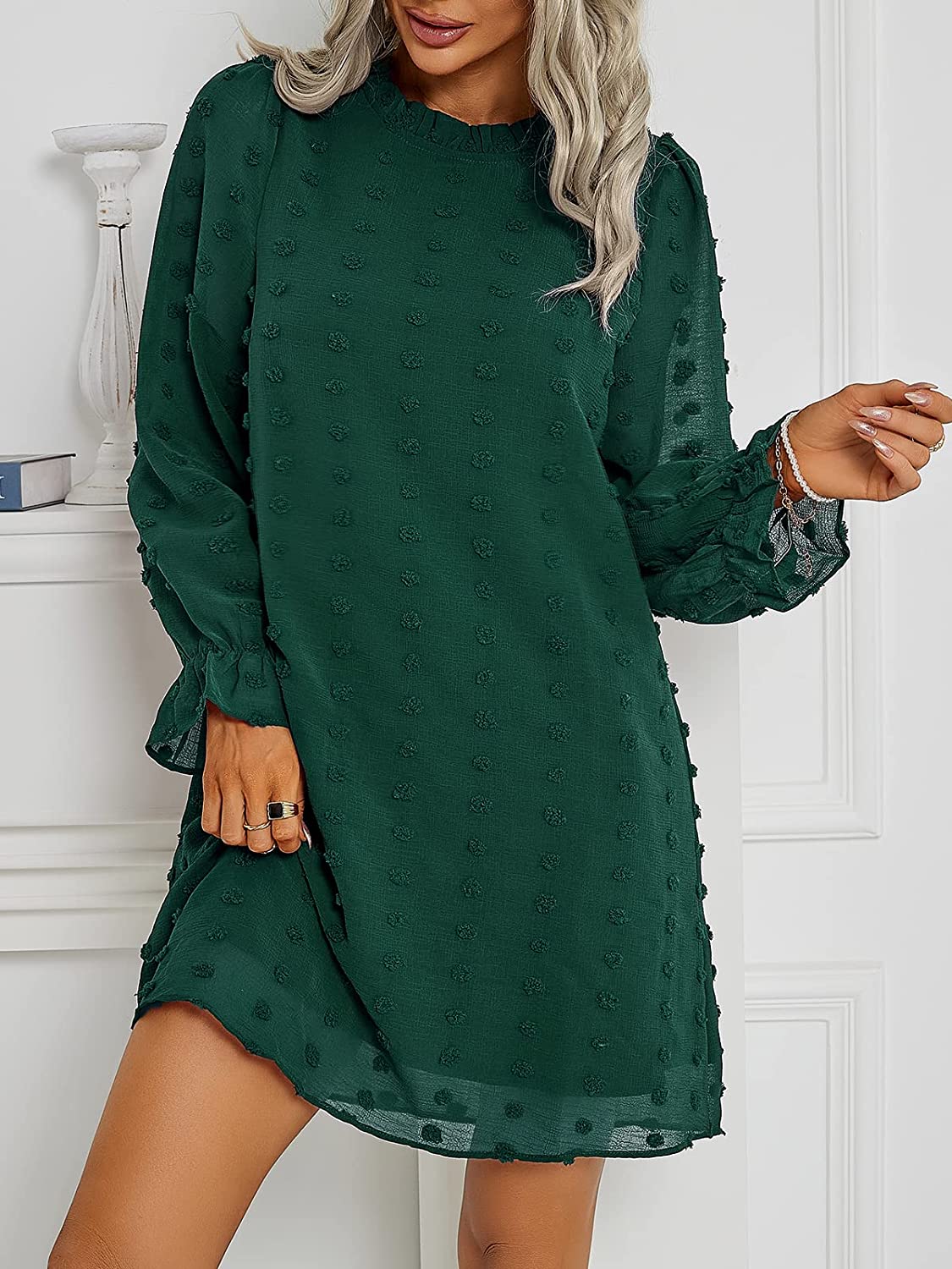 Adibosy Women's Dress Long Sleeve Swiss Dot Mini Dresses Round Neck Loose Chiffon Casual Short Dress