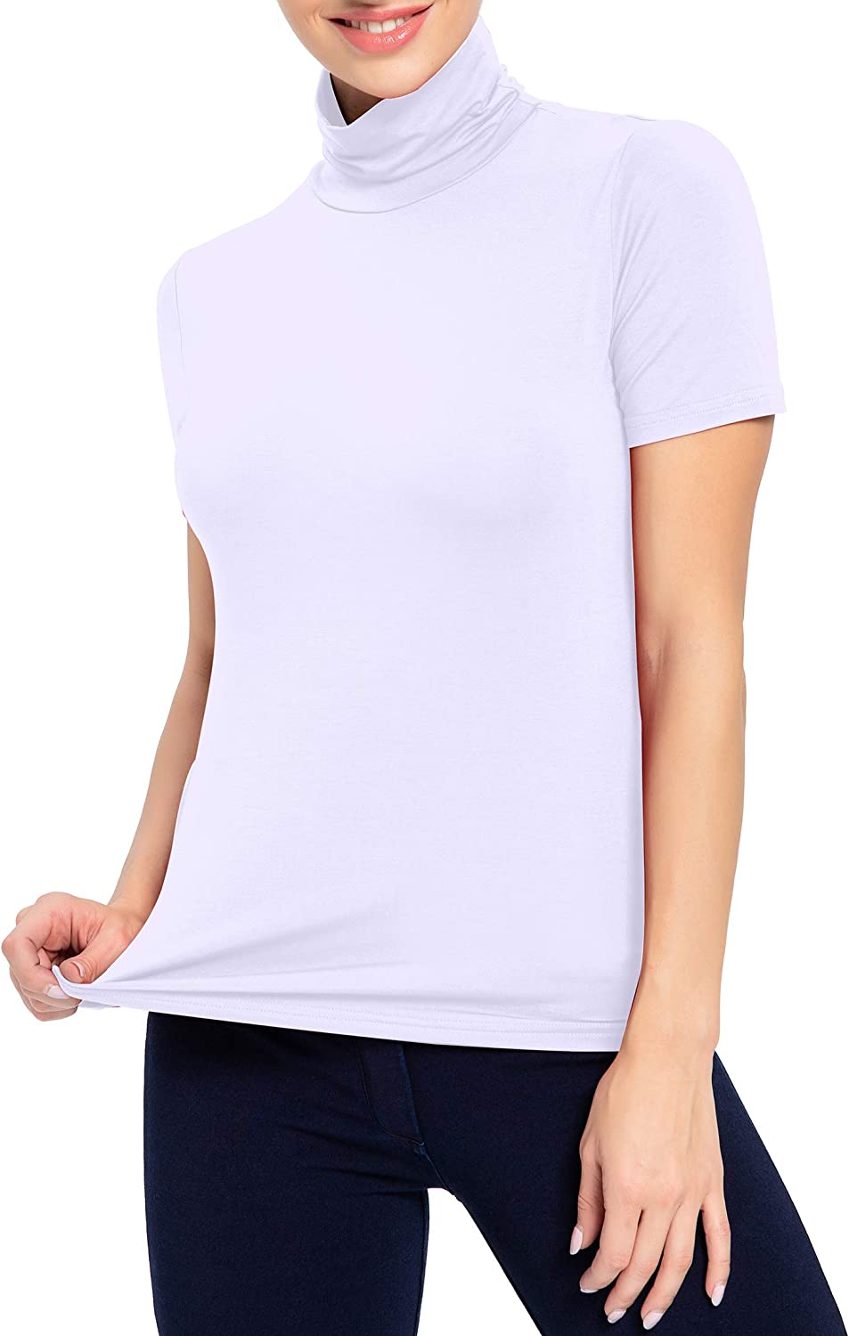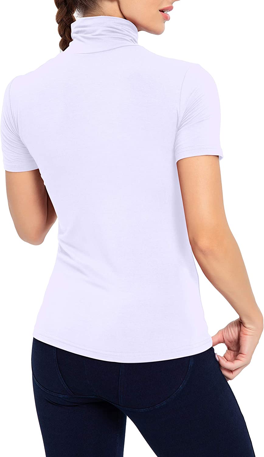 AUHEGN Women's Mock Turtleneck Top Short Sleeve Lightweight Active T-Shirt