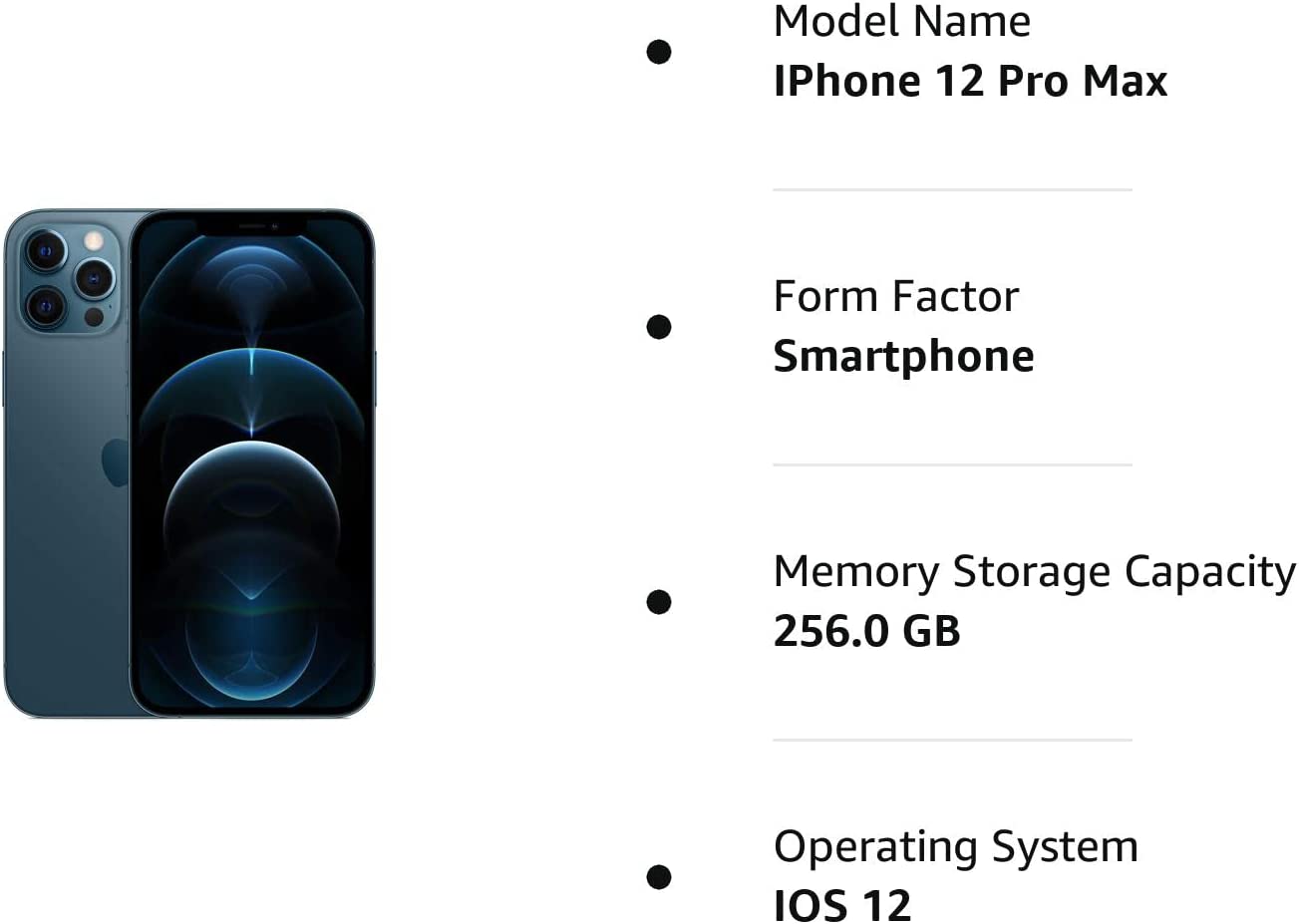 Apple iPhone 12 Pro Max, 256GB, Pacific Blue - Unlocked (Renewed Premium)
