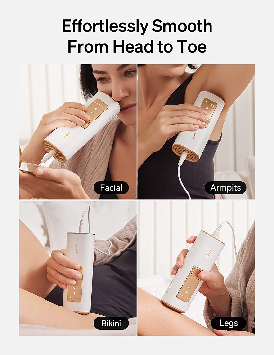 Get Salon Results in Just 6 Weeks - Enjoy smooth skin and get a noticeable reduction in hair. After the first four weeks of treatment continue with bi-weekly touch-ups to look your best year-round. Ulike’s sapphire-based flat light window design targets hair at the root while ensuring each flash is painless and efficient.