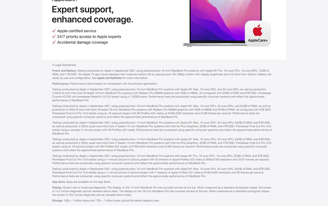 Stunning 14-inch Liquid Retina XDR display with extreme dynamic range and contrast ratio