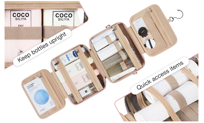 Function -Unique design allows you to get a toiletry bag, shaving kit or makeup bag / cosmetic bag, all in one. It's a great choice for business trips, travel, gym, camping, home use and more; also a great gift to women and men.