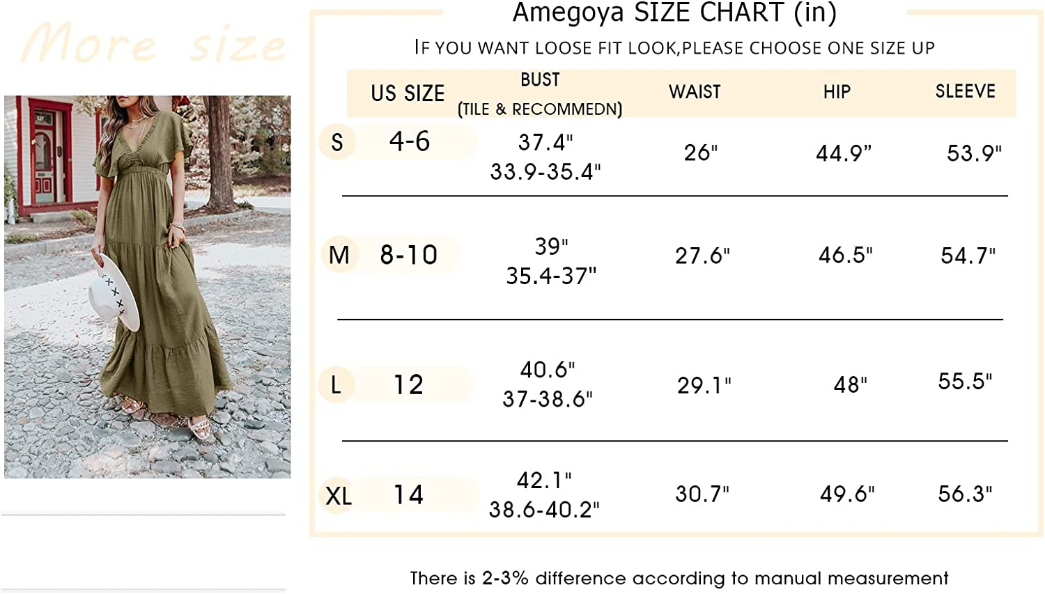 Amegoya Women's Casual Short Sleeve V Neck Floral Maxi Dresses Boho Beach Photoshoot Flowy Ruffle Long Dress
