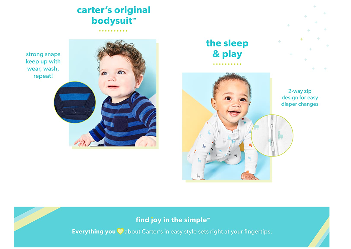 - No tags. No fuss. Just the Carter's quality you know + love, exclusively at Amazon.