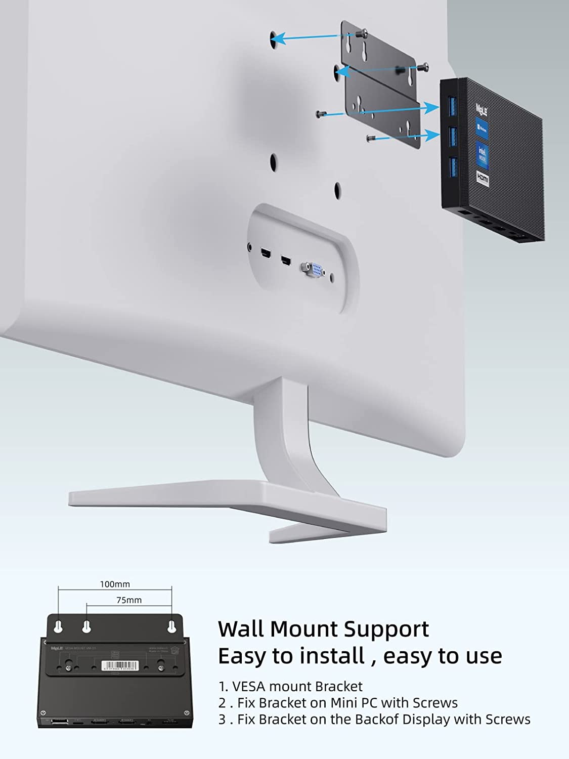 【Extra VESA Mount & Function】--Come with a wall-mounted holder to allow you to hang mini computer behind monitor. Saving your desk space and letting your desk look more tidy, MeLE Mini PC equiped with unlock Bois,Support Wake On LAN, PXE Boot, RTC Wake, Auto Power On.We offer Free replacement for 3 months, 1 year free warranty, and 7 Days/ 24 hours serving. All our products have obtained FCC, CE, ROSH certification.