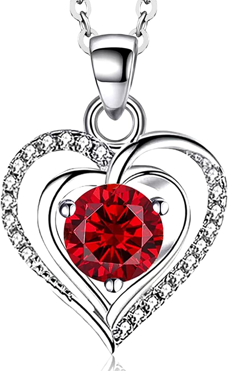 RIVIKO Heart Birthstone Pendant Necklace for Women 925 Sterling Silver Zirconia Necklaces Christmas Valentine's Mothers Day Jewelry Gifts For Girls Mother Wife