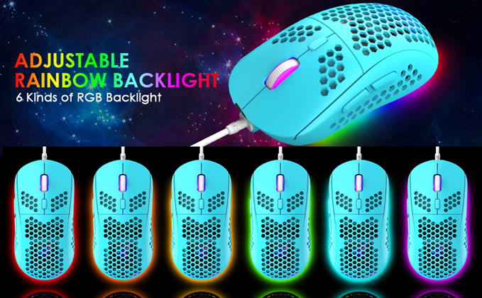 3, Light effects: 6 Kind RGB backlit effect (Mouse backlight color Can be adjusted)