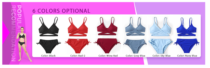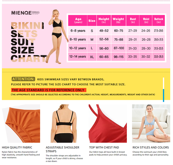 [FEATURES] Girls fashion-bikini-sets, friction high color fastness, Not easy to fade, long wear like new, highly chlorine and salt resistant fabric, have Four-way stretch and shape memory.