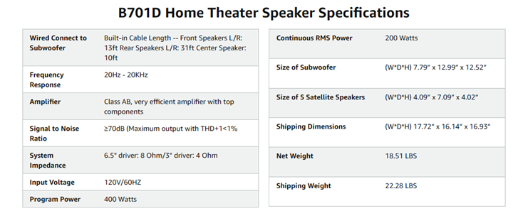 - 800 Watts Peak Power: Home theater system speakers can reach up to 800 watts of power, 6.5 inch Subwoofer with a built-in receiver, high volume but with professional sound quality and excellent bass sound, deliver the cleanest, most natural sound possible. Bring you and your family with full cinema experience at home