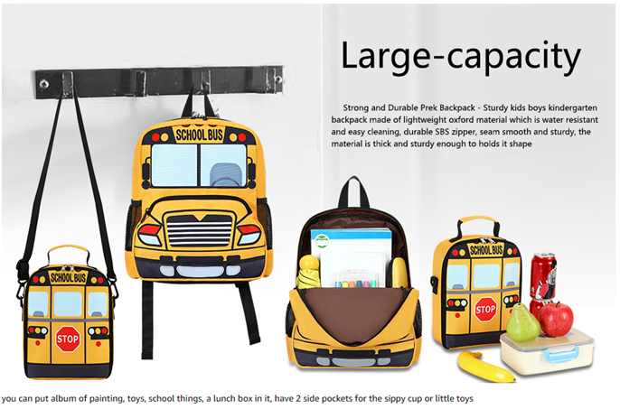 - Multi-Pocket of The Toddler Backpack - The main compartment of this preschool bookbags is pretty roomy, you can put album of painting, toys, school things in it, have 2 side pockets for the sippy cup or little toys. The inside has a nice and soft lining and a zipper pocket It is perfect for a school age children or use as a diaper bag, day care bag or for outing, shopping or as a gift.
