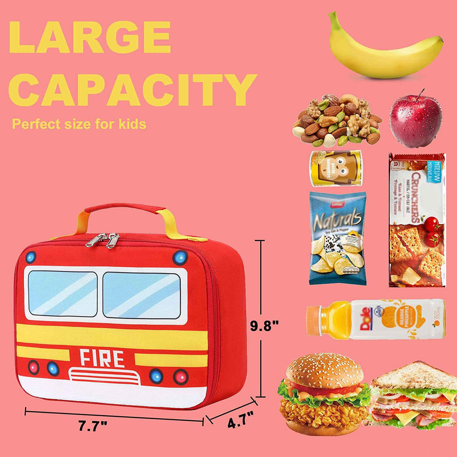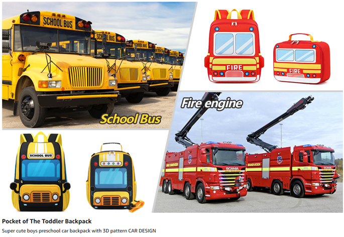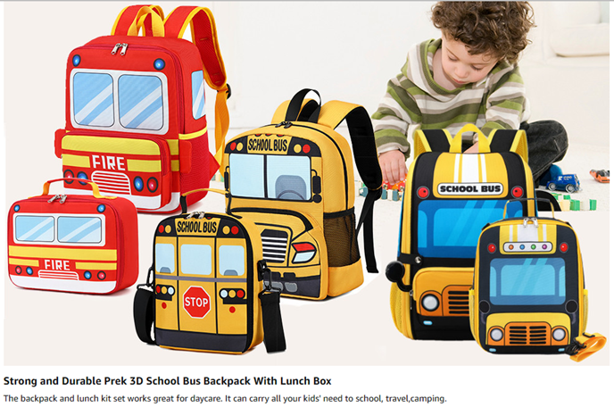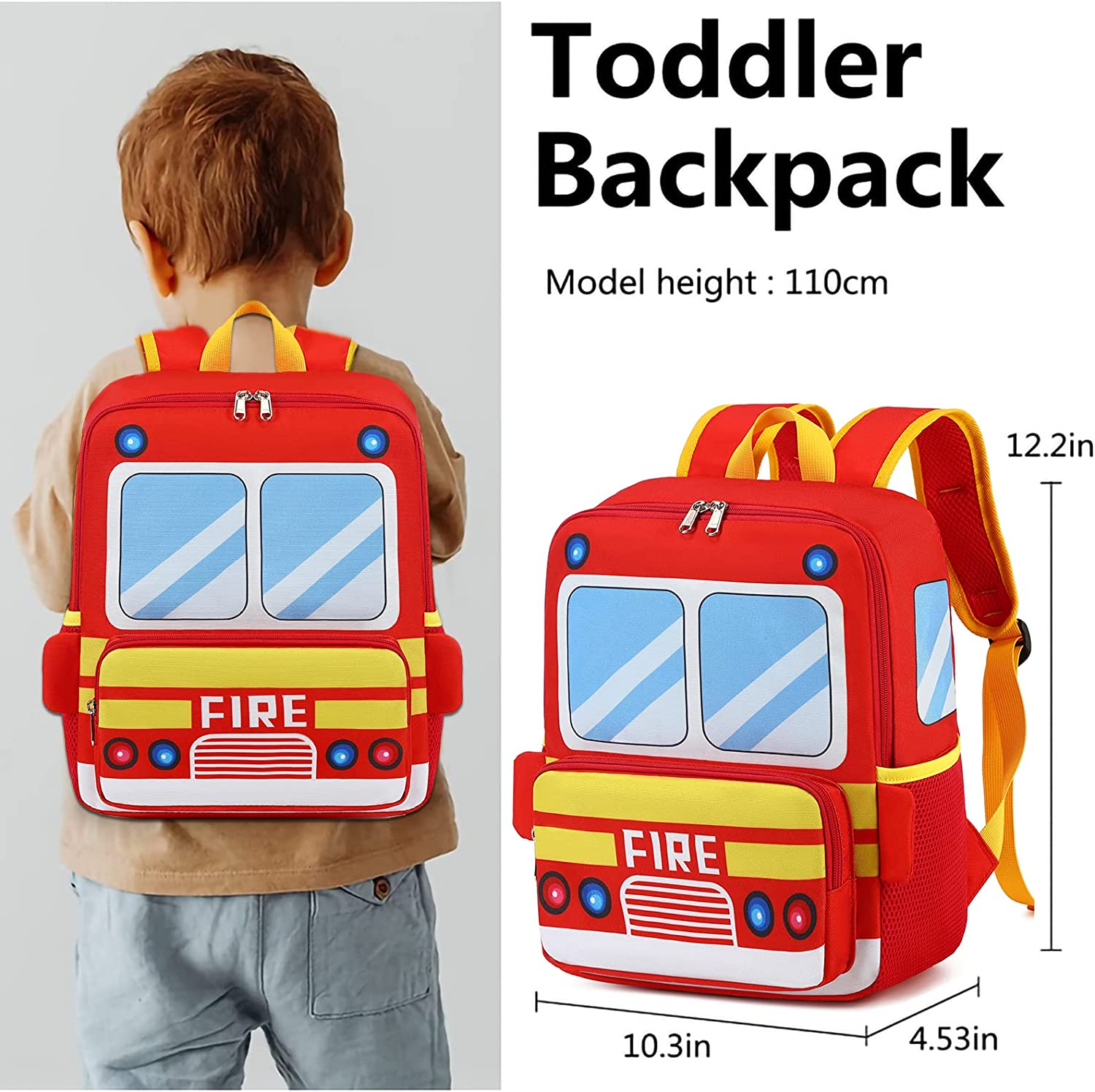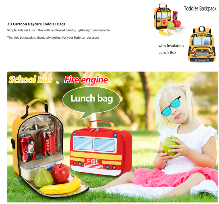 - 3D Cartoon Fire Truck Backpack with lunch bags - This toddler backpack designed for children ages 3-4. Solid, adorable, multi-purpose backpack with bright and attractive colors. backpack size:10.03*4.53*12.2inches, 9.09L