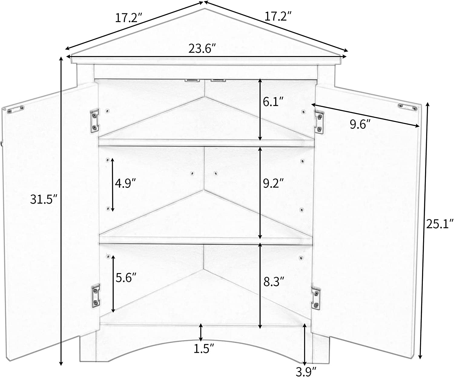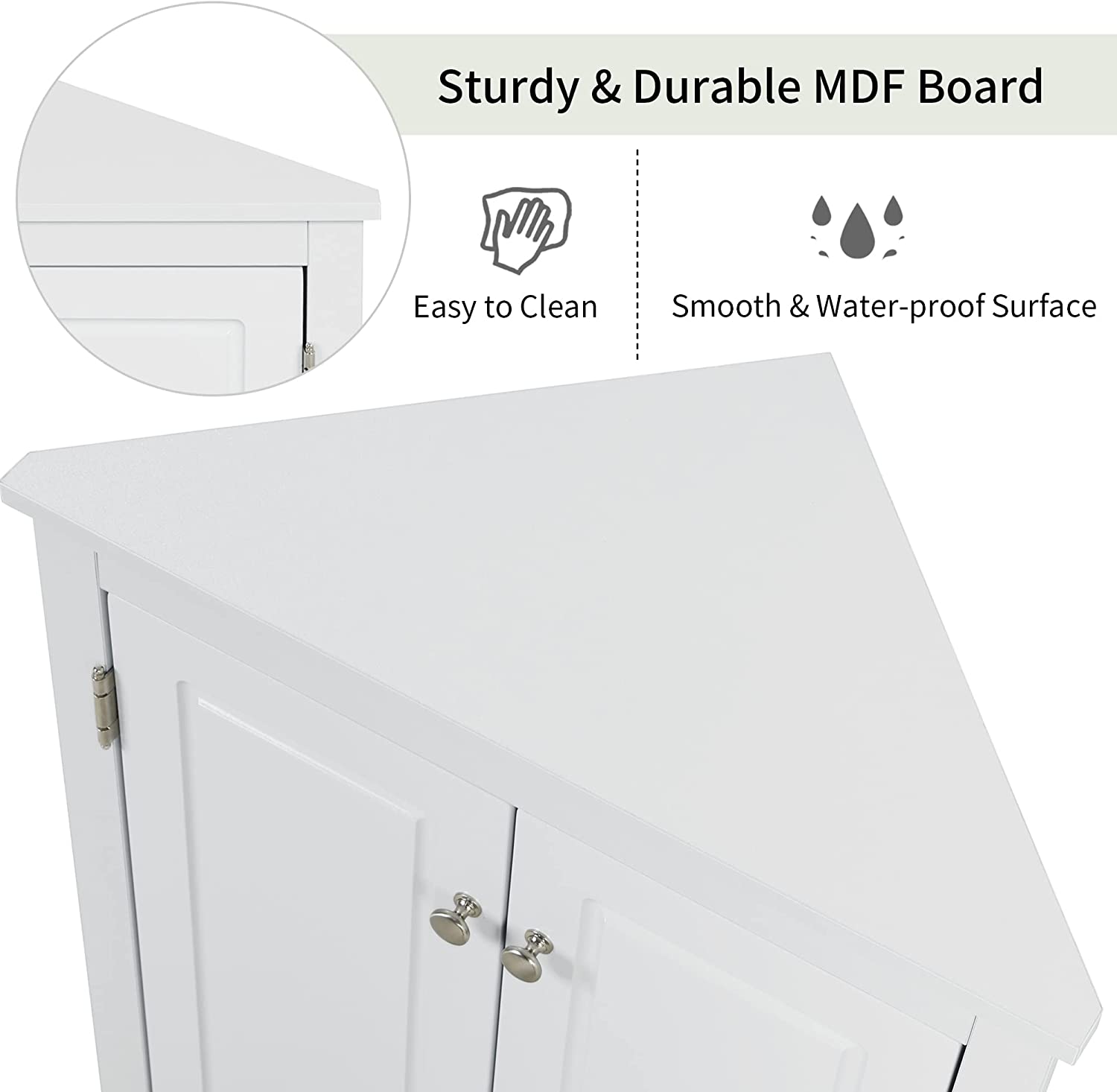 ★GREAT-QUALTY MATERIAL: Made of high dendity MDF boards, this corner cabinet is durable and can be used for many years. The surface is smooth and water-proof, which reduces much trouble when you do cleaning. Metal hardware not only ensures long-term durablity but also adds more sleek elements to your home.