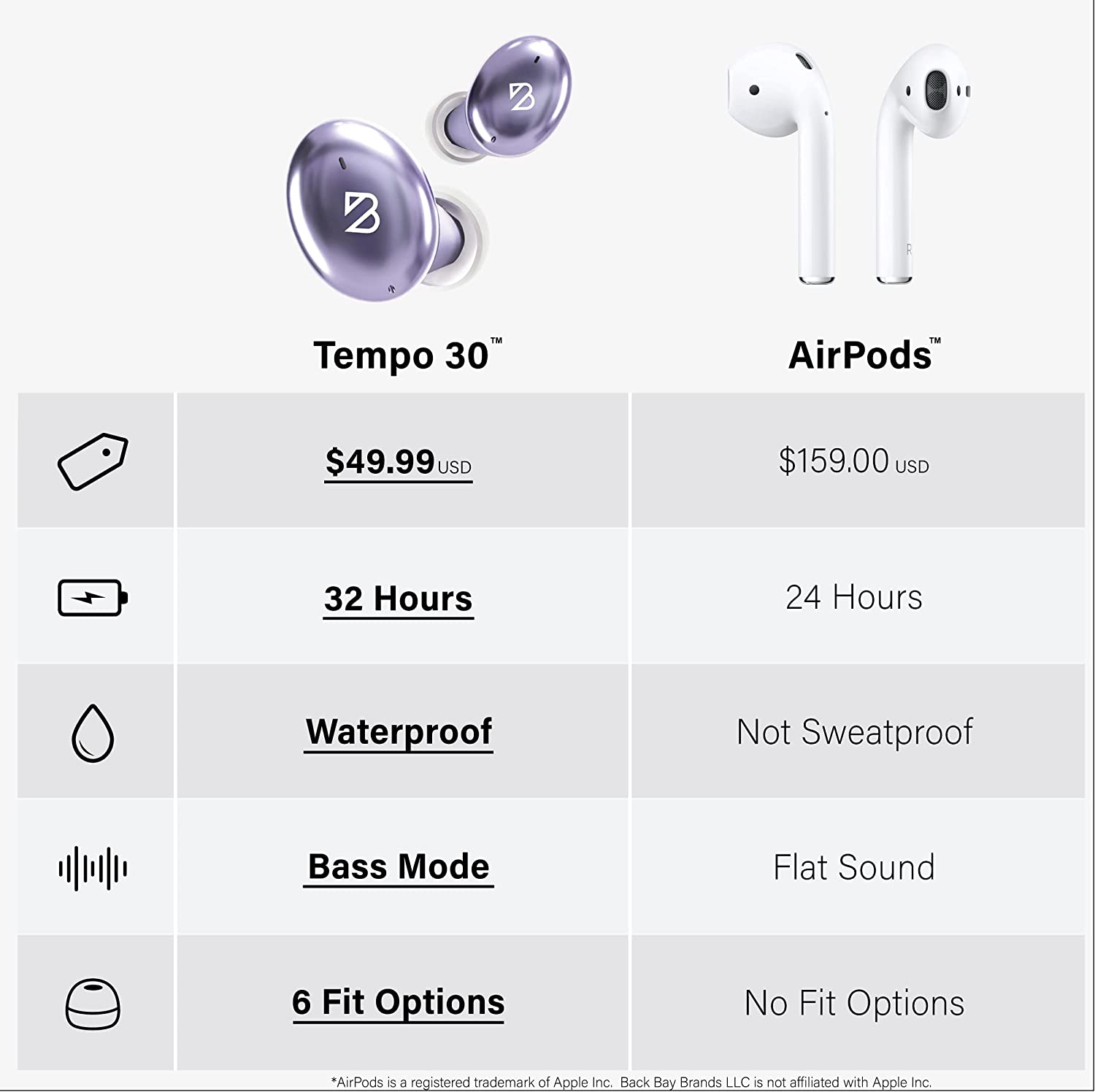 Tempo 30 Purple Wireless Earbuds for Small Ears Women, Cute Purple Earbuds with Mic, Bluetooth Earphones for Small Ear Canals, IPX7 Sweatproof, Long Battery, Loud