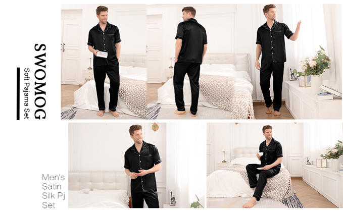 THE PERFECT GIFT for Dad, Son, Boyfriend or Husband --- SWOMOG Mens Satin Pajamas Set