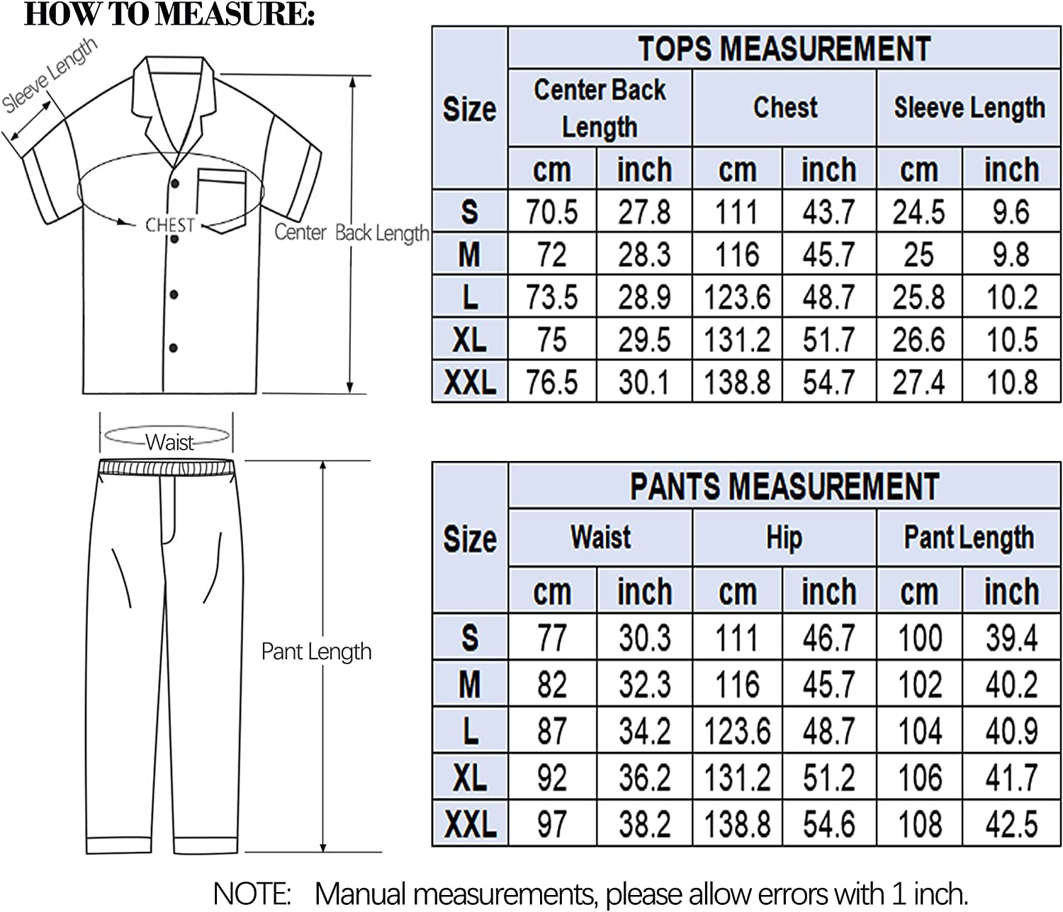 - SIZE AND CARE: Men silk pjs set can be machine or hand washed. Hang to dry. Do not iron or bleach at high temperatures. Our size is standard US size, please refer to the size chart before ordering