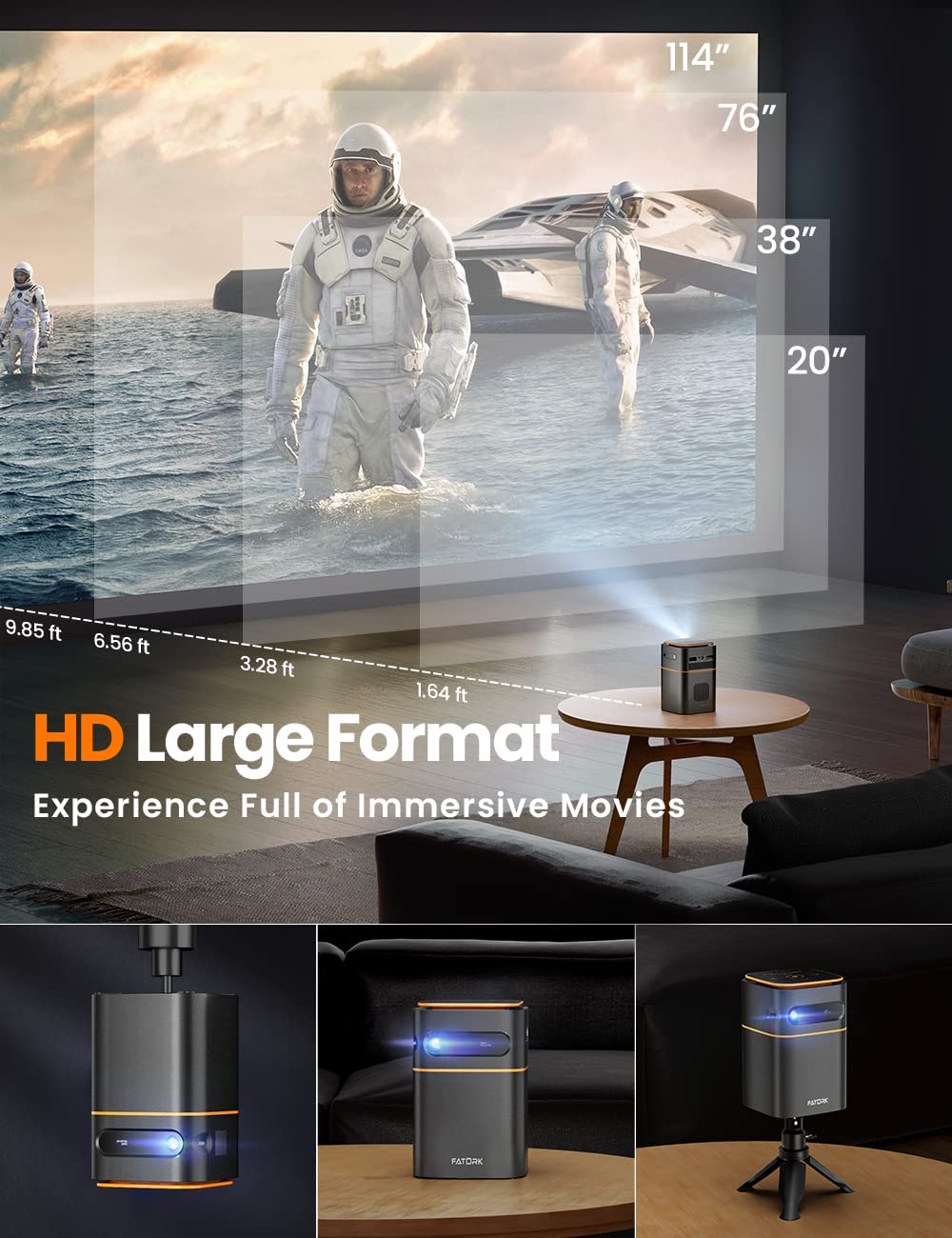 FATORK Mini Projector, 5G WiFi DLP Smart Portable Movie Projectors, Pocket Monster Outdoor Projector for Phone 1080P HD Support Wireless Video Travel Short Throw, Compatible with iOS/Android/HDMI/USB