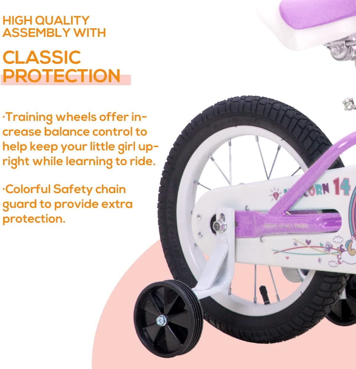 - Grow with Your Child - The adjustable saddle and handlebar, seat post, and slack seat-tube angle make for easy, tool-free adjustments to allow the JOYSTAR Fairy girl's bike to grow with your child and prepare them for a full-sized bicycle. The training wheels can be removed when they are ready to ride independently.