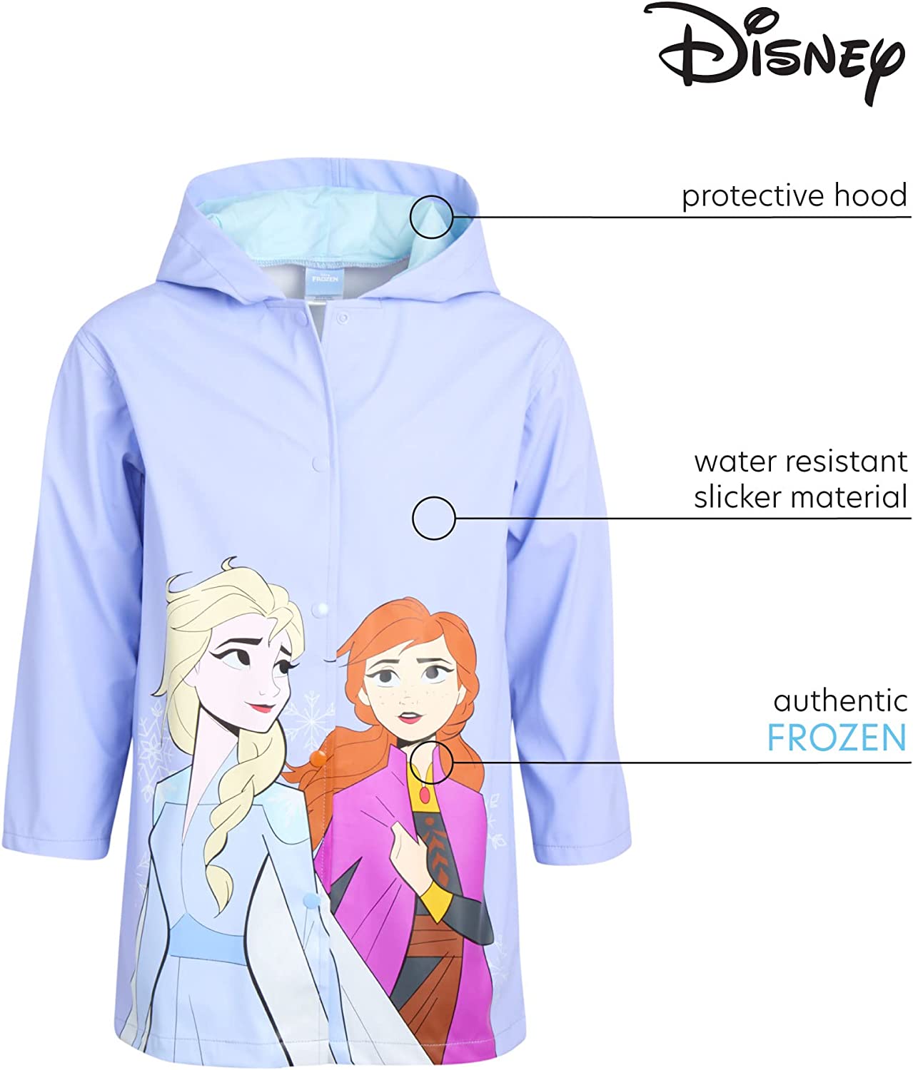 DURABLE FROZEN JACKET: We fashioned this girls' coat from wind and water resistant fabric that will ensure your daughter stays comfortable when the temperature drops; Great waterproof jacket for everyday wear, preschool, and outdoor play in the rain; Our Disney raincoat is perfect for every baby girl who loves Frozen, Elsa, and Anna