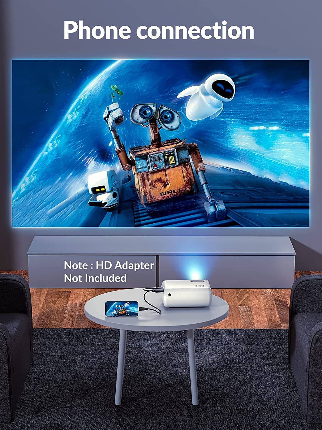 【2023 Upgrade Mini Projector】 Mini projector has 9000 Lux brightness and supports 1080P Full HD 30-180(Recommended for 60 -100 inches) inch display, adopting advanced LED technology and uniform illumination method, which make the edges of the projection brighter and clearer. These ensure the projection image quality presents a real, dynamic, and color-vibrant effect. The mini projector also applied diffuse reflection technology, protect your eyes away from tiredness.