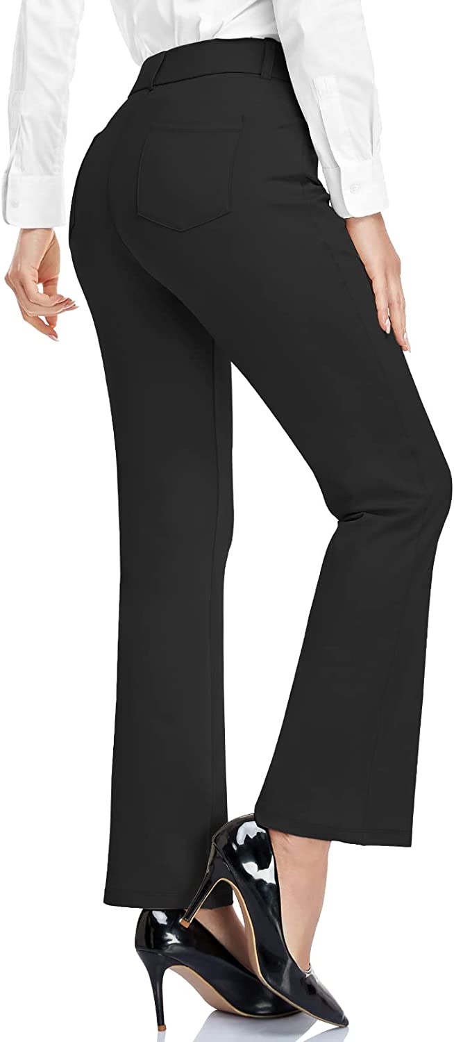 SLIGHT FLARE & ZIPPER-FLY STYLE: Featuring bootcut leg to conform to your body. High elastic waist, classic zipper fly and button closure. These relaxed fit pants are suitable for work or casual.