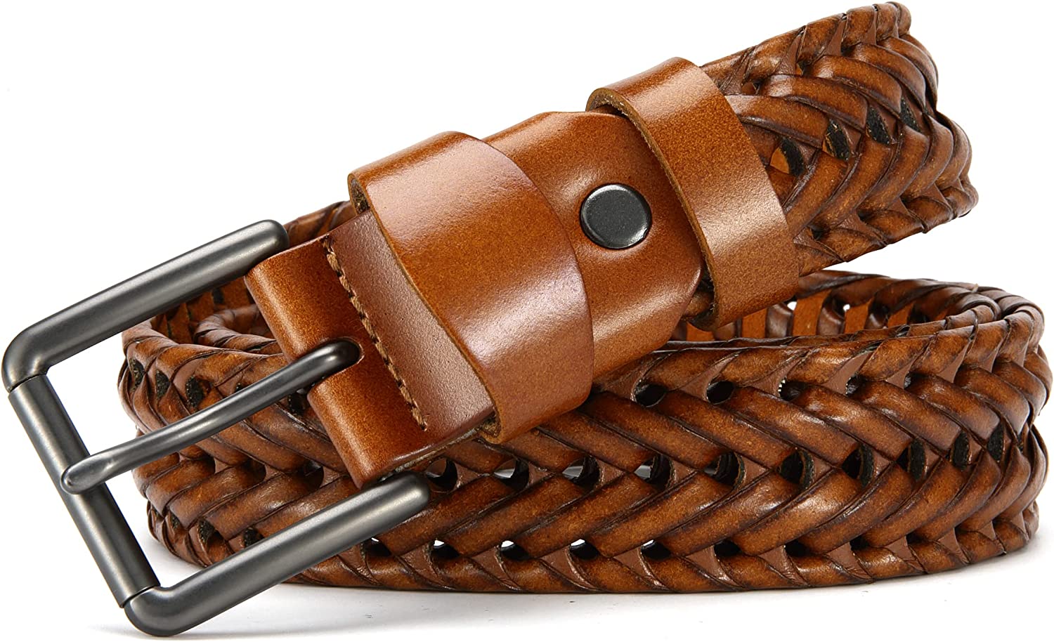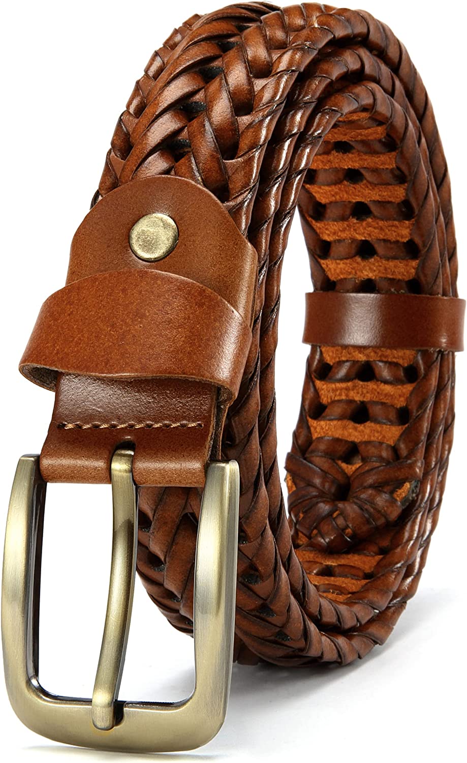 CHAOREN Braided Belt for Men - Mens Belt Leather 1 3/8" for Casual Jeans - Hand Woven Make Your Gift Awesome