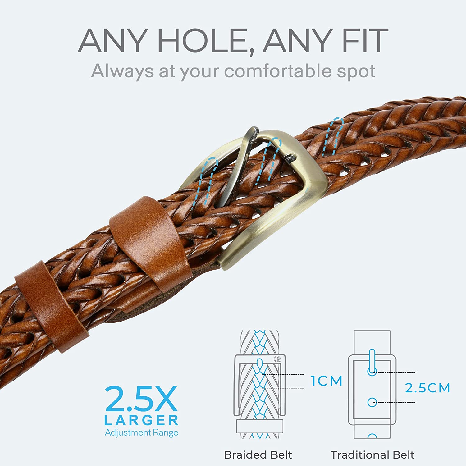 • PERFECT FIT COMFORTABLE - Hand-braided leather belt enable the buckle lock in any hole in the strap. CHAOREN woven belt provides you with the most adjustable fit option. Over 100 Holes are located every 1/4 inch, which allows you to find your perfect fit all day.