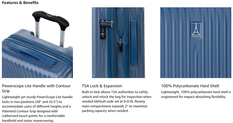 • Lightweight, 100% Polycarbonate hard shell is engineered for impact-absorbing flexibility with a stylish outer finish that helps reduce visible scratches and scuffs. Built-in lock allows TSA authorities to safely unlock and relock the bag for inspection when needed (default code set at 0-0-0)