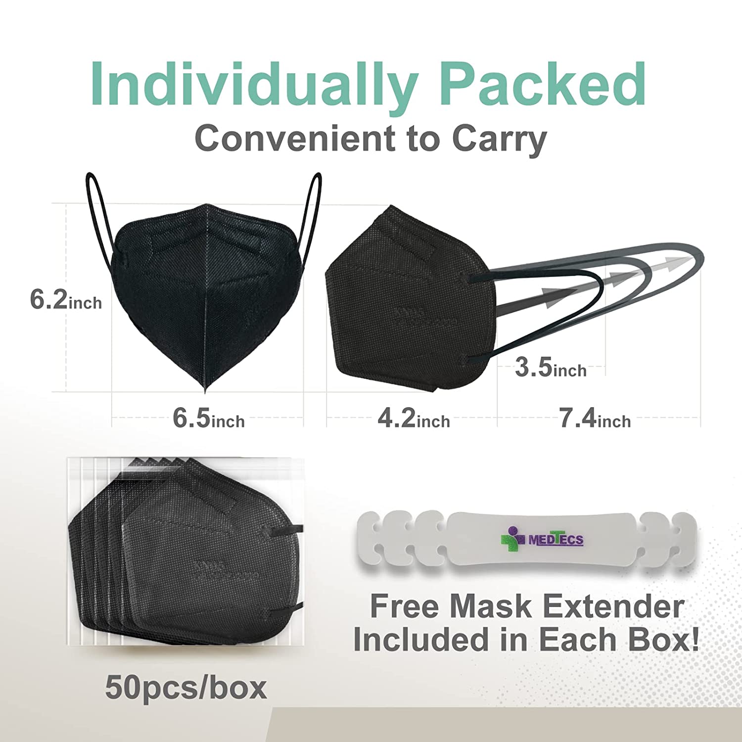 【Individually packed】Each of our KN95 face masks is individually packed to prevent contamination and for you to easily carry around. A mask extender is included in each box to ease pressure around the ears and provide better comfort for users with a larger head size.