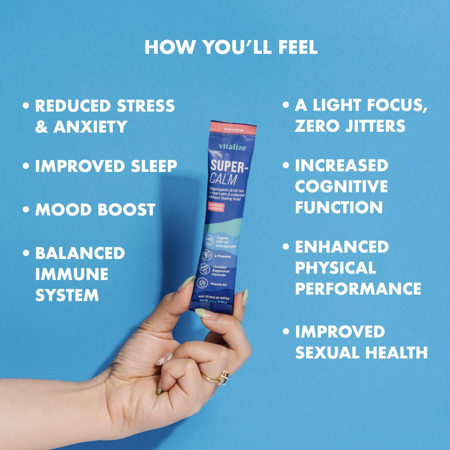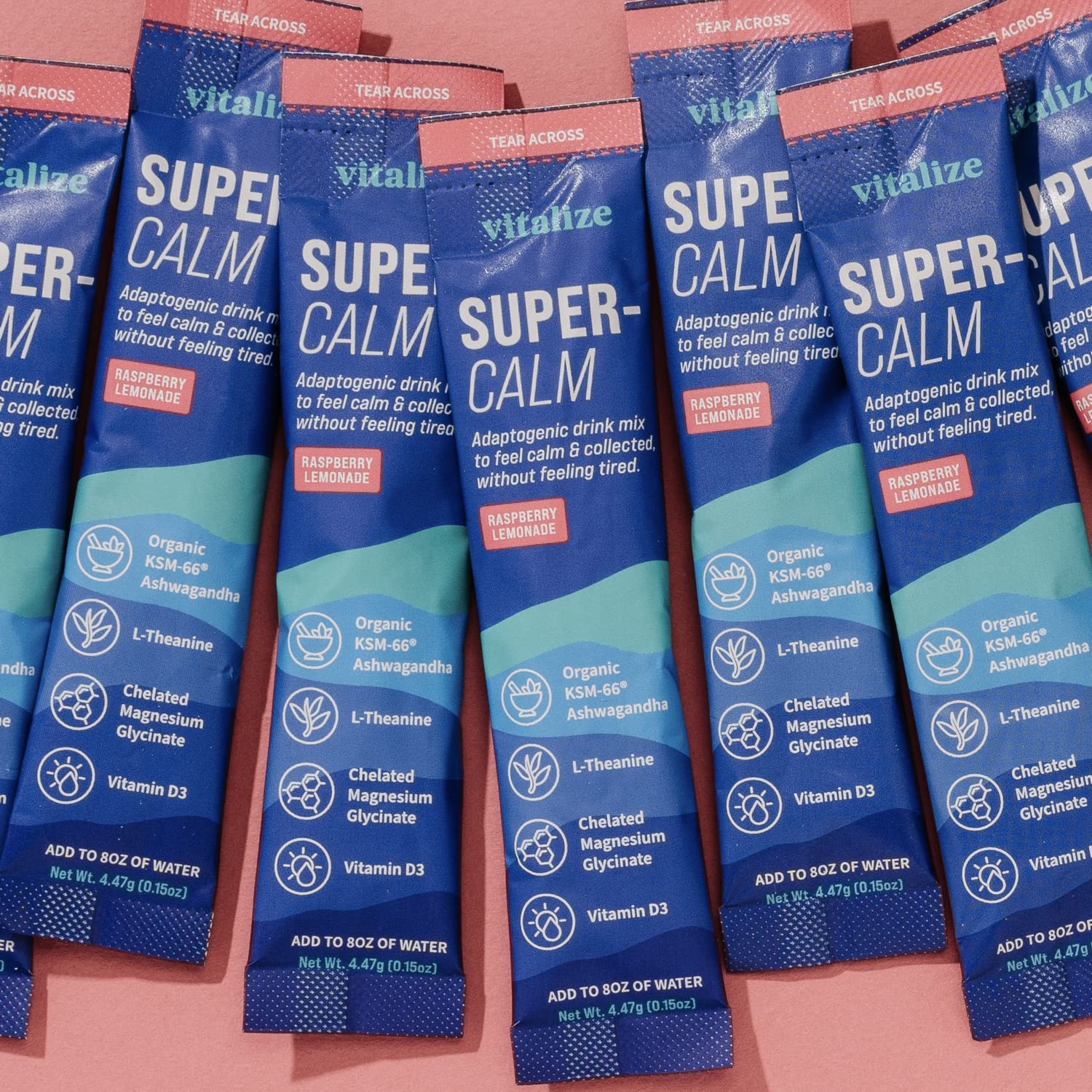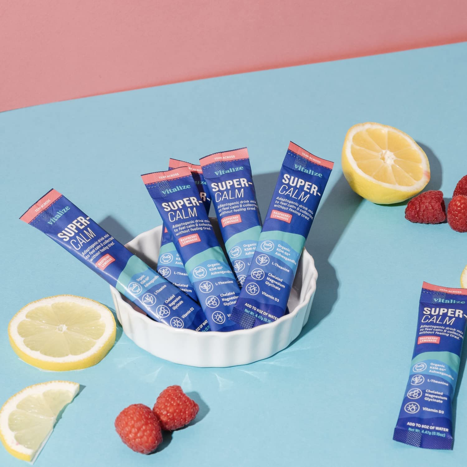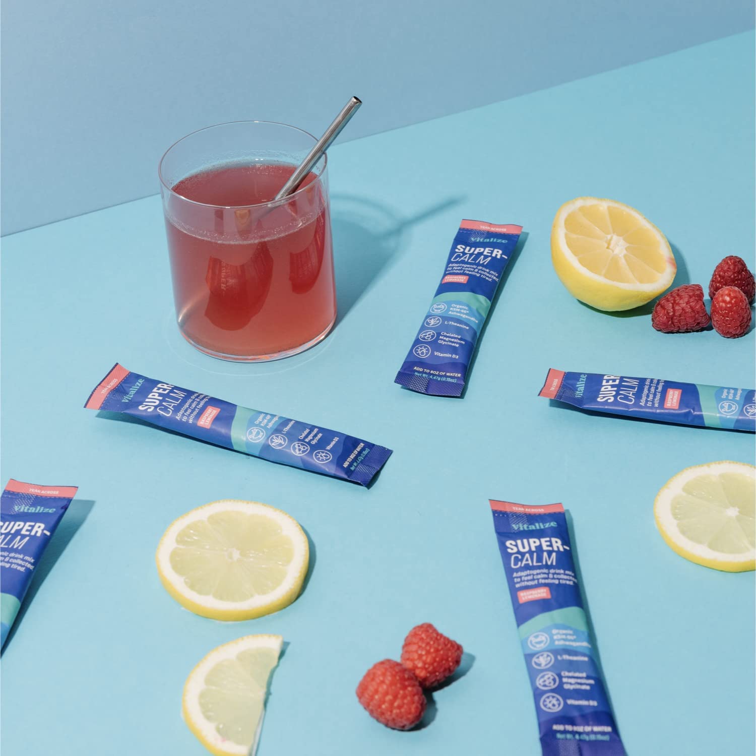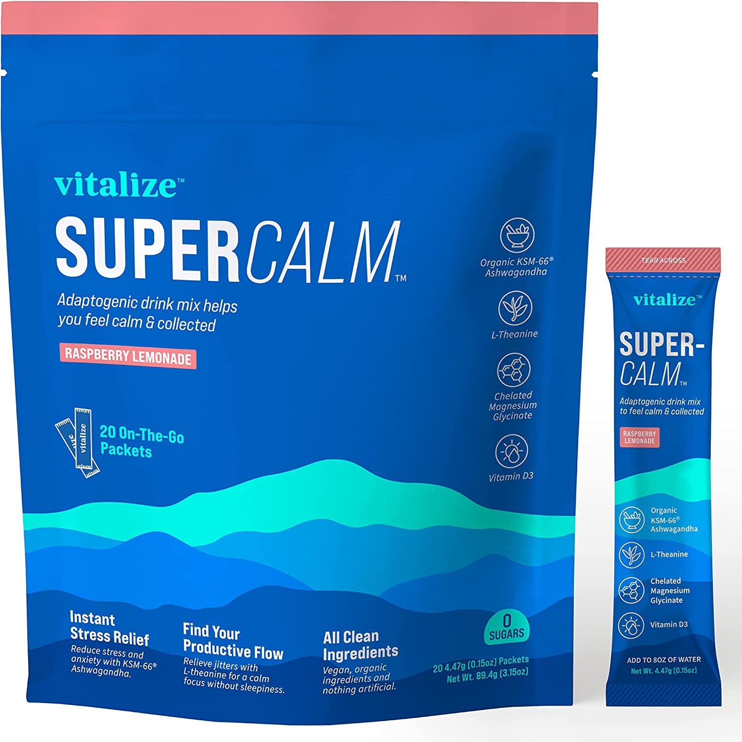 VITALIZE SuperCalm - Feel Calm, Cool, and Collected | Drink Mix | Contains KSM-66 Ashwagandha, L-Theanine, Magnesium Glycinate, and Vitamin D3 | Raspberry Lemonade, 0.15 Ounce (Pack of 20)
