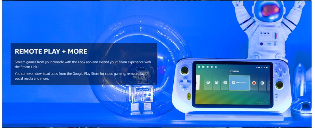 - Remote Play: Use this handheld gaming device to remotely play your games with the Xbox Remote Play app and Steam Link apps