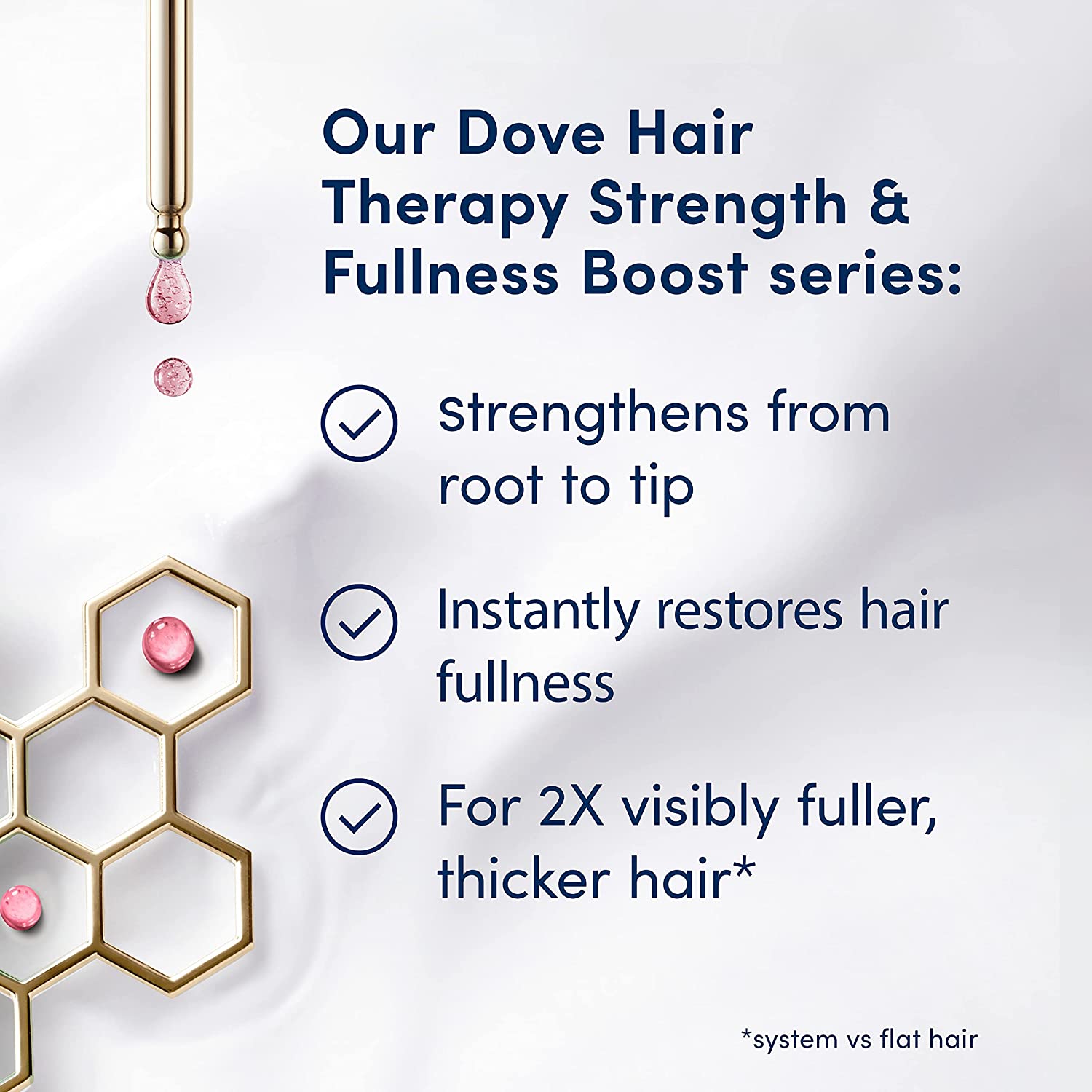 Perfect for fine hair that deserves extra care. Dove Hair Therapy Strength & Fullness Boost Shampoo and Conditioner System is designed with serum and retinol, which strengthen hair from root to tip and instantly restore hair fullness. This sulfate-free system features potent moisturizers and nourishing ingredients that deliver 2X visibly fuller, thicker hair*.
