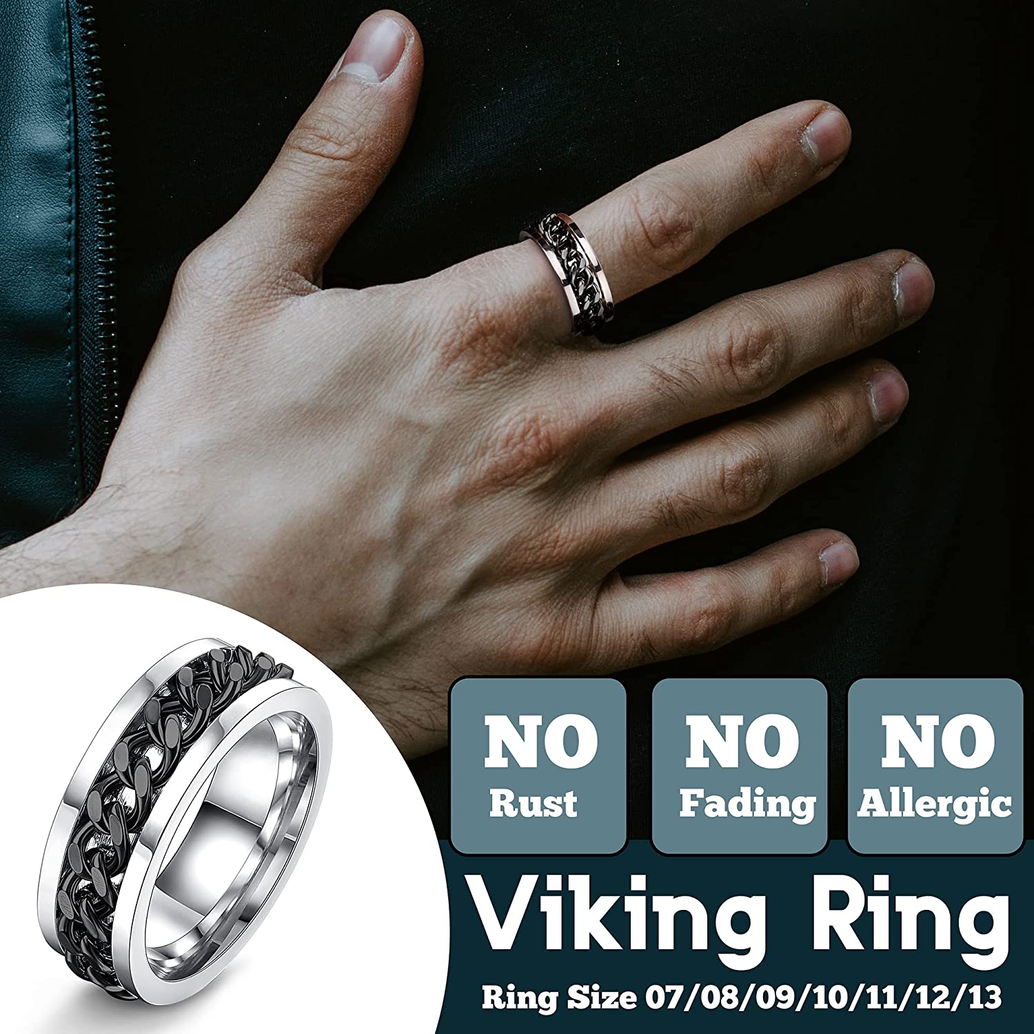 【Standard Ring Size】Width:Celtic Signet Ring is 0.57”, Thumb Wide Ring is 0.67”, Cuban Chain Spinner Ring is 0.3”,Greek Key Engraved Ring is 0.3''.Size 7-13 for Available,Suitable for Most Unisex Finger.Before Choose the Ring Size Please Measure Your Finger in Right Way to Save Your Time.You Can Refer to the Last Size Reference Chart to Choose the Ring Size.