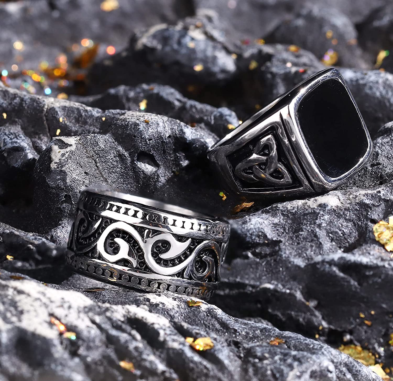 【Stainless Steel Ring 】This Retro Signet Ring set is Made of Stainless Steel, Strong and Durable, Not Easy to Faded, Advanced Electroplating Process, Long Color Retention Period, Highlighting the Texture and Showing Your High Wearing Taste.Smooth Internal Surface, Very Comfortable to Wear.