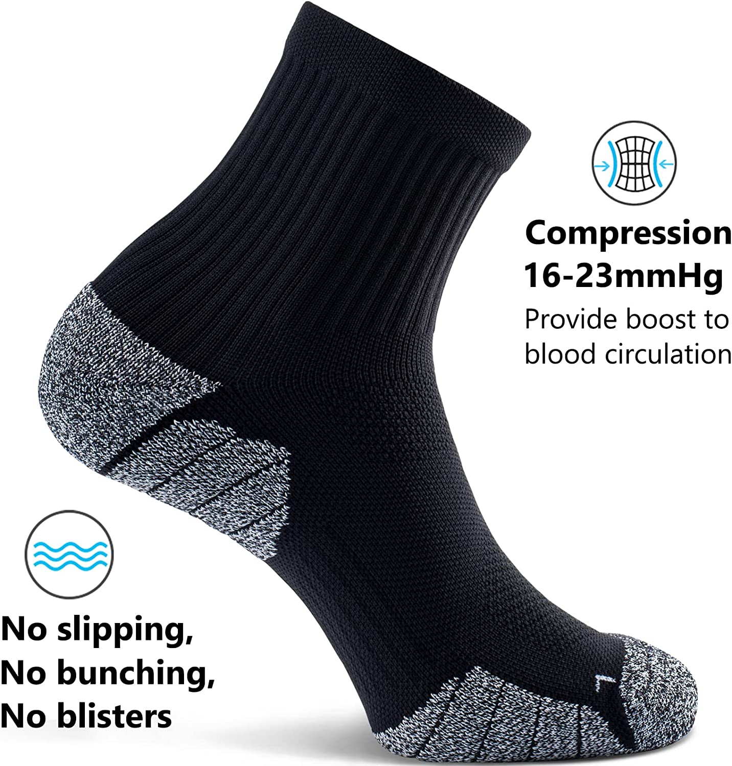 VERSATILE WEAR: Quarter socks pair perfectly with sneakers and boots; High-performance for running, basketball, hiking, golf, tennis, cycling, gym workout, long hours sitting or standing