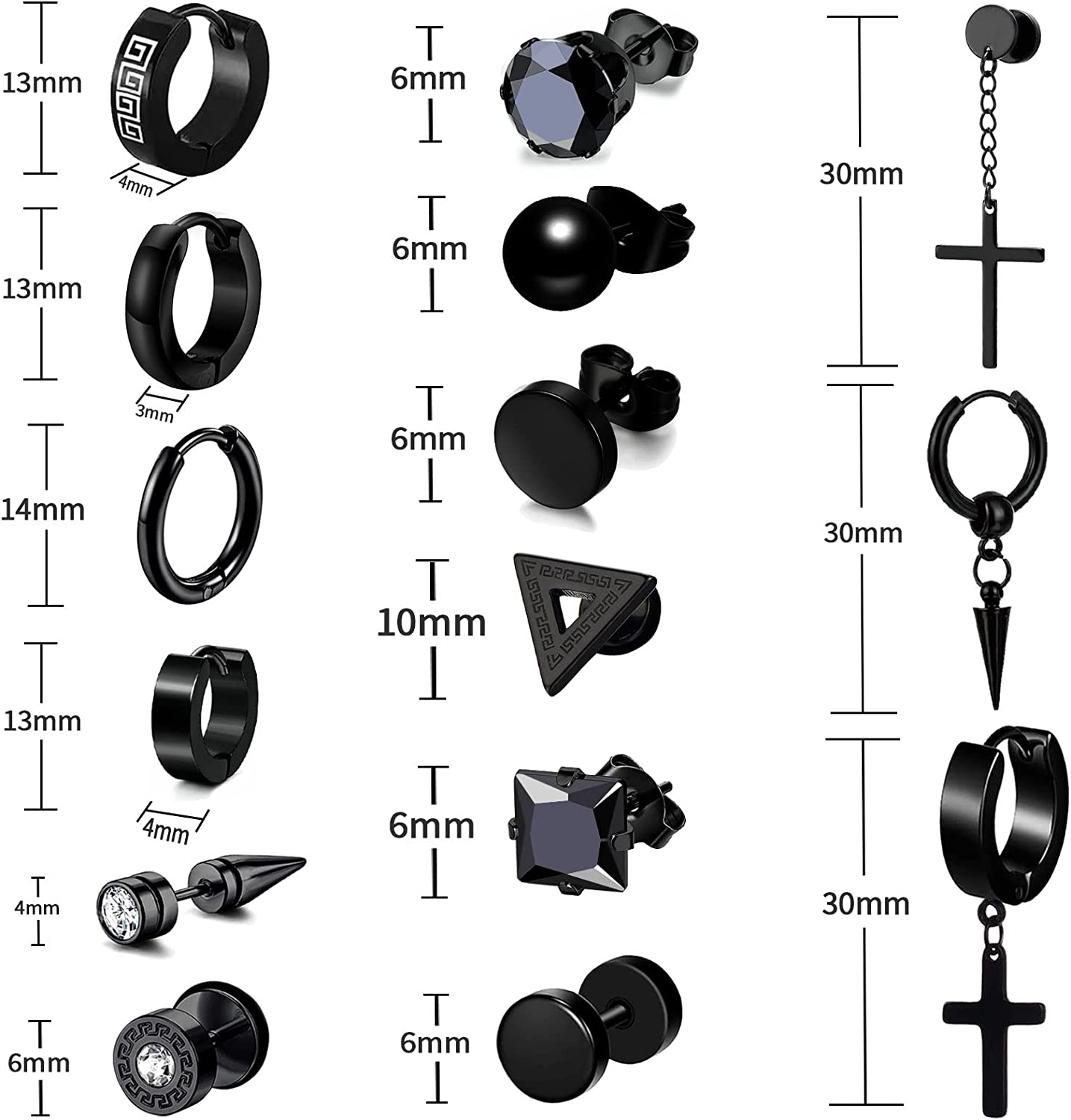 Fashion and Classic Style - These black earrings and studs for men and women include many shapes, such as dangle-hinged hoops, circle earrings, and ear studs of various shapes. The surface of the earrings and ear stud is high-polished that looks very shiny and cool. You can wear them to match different clothes and wear them on different occasions. It will make you very attractive.