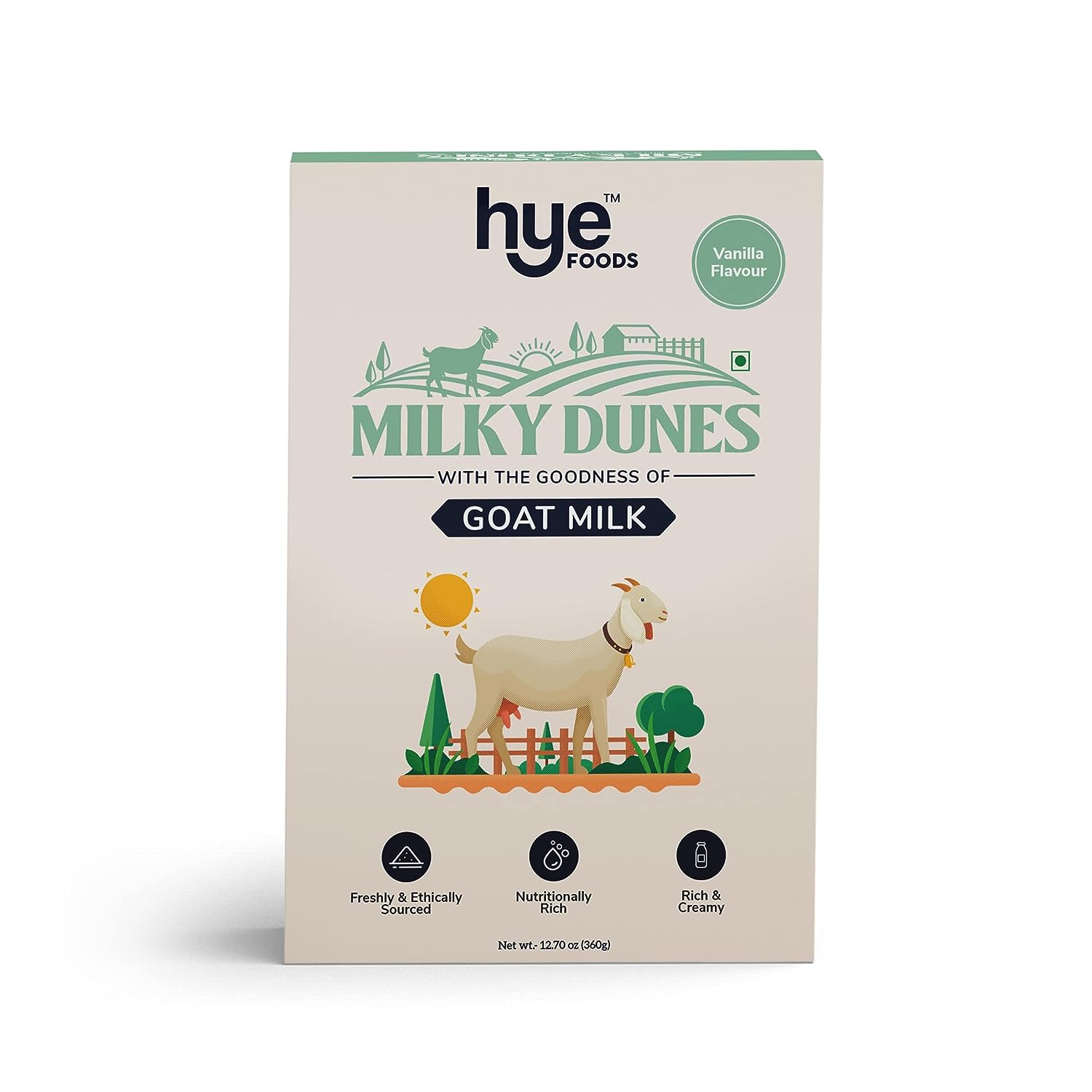 HYE FOODS Milky Dunes Goat Milk Powder | Pasture Grazed ? Vanilla Flavour ? 12.69 Oz (360gms)