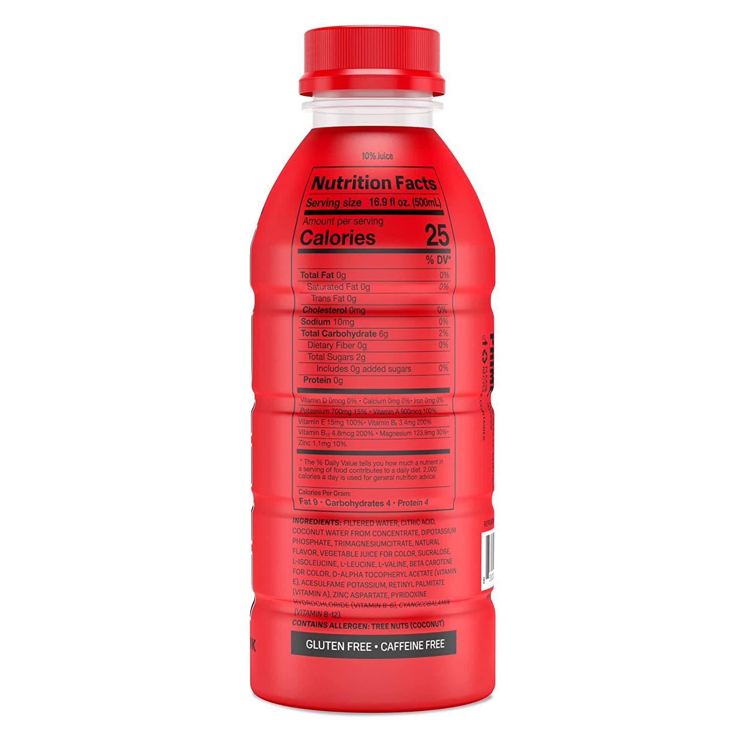 10% coconut water, zero added sugar, 250mg BCAAs, B Vitamins, Antioxidants, 834mg Electrolytes and only 20 Calories per bottle.