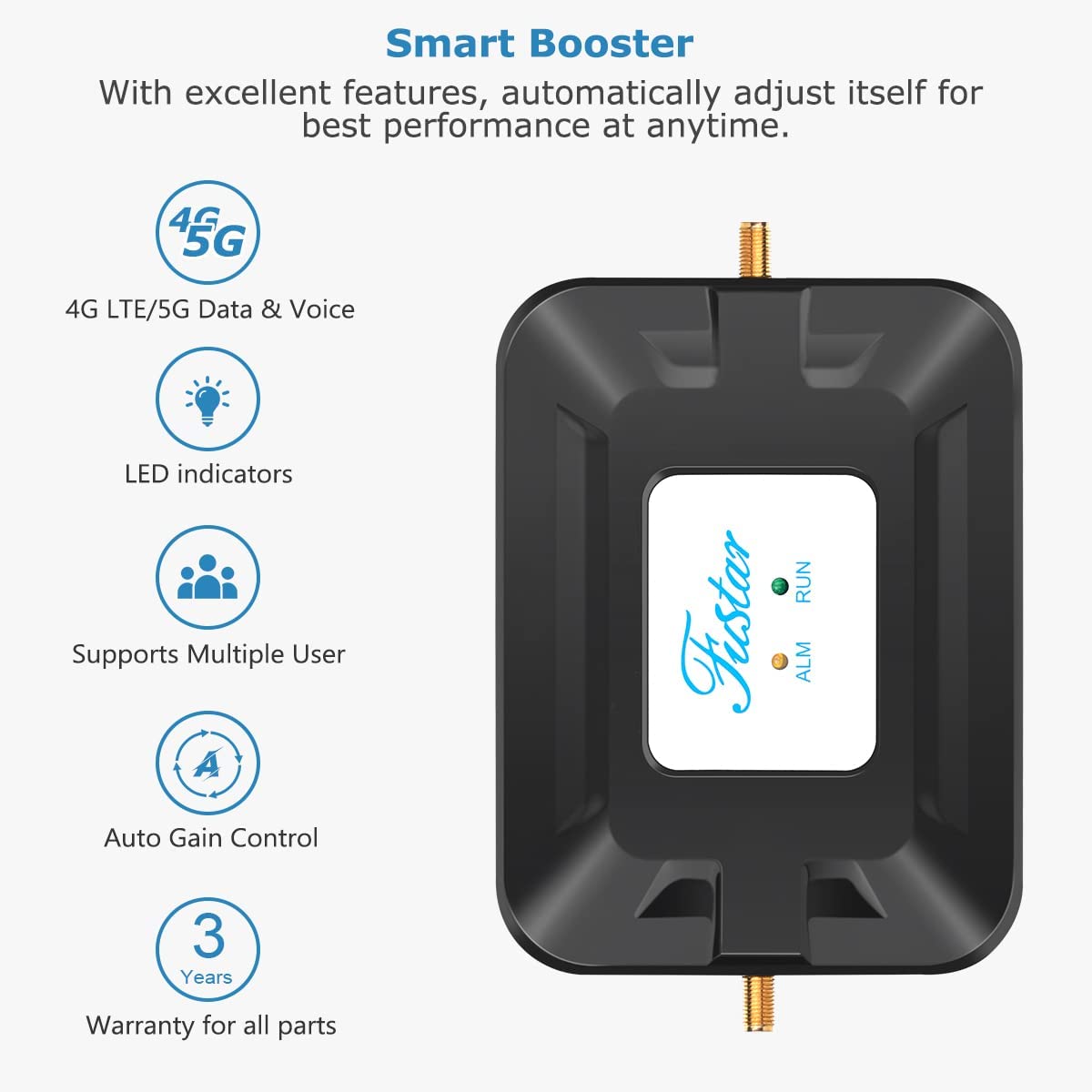 FUSTAR Cell Phone Signal Boosters for Home 4G 5G AT&T, T Mobile, U.S Cellular, Cricket, Straight Talk Band 12/17 BLACK