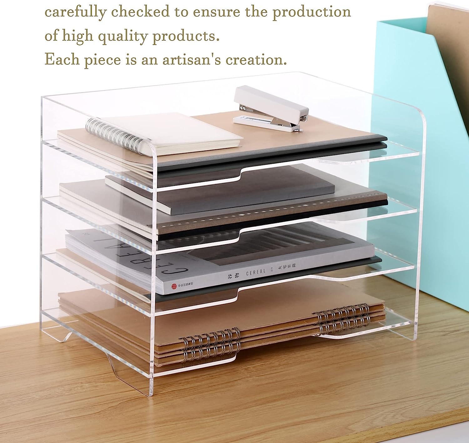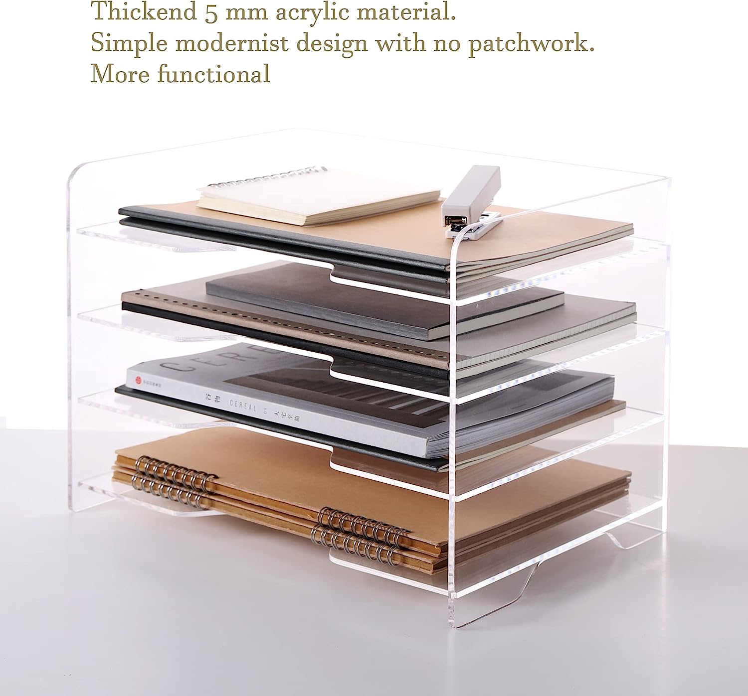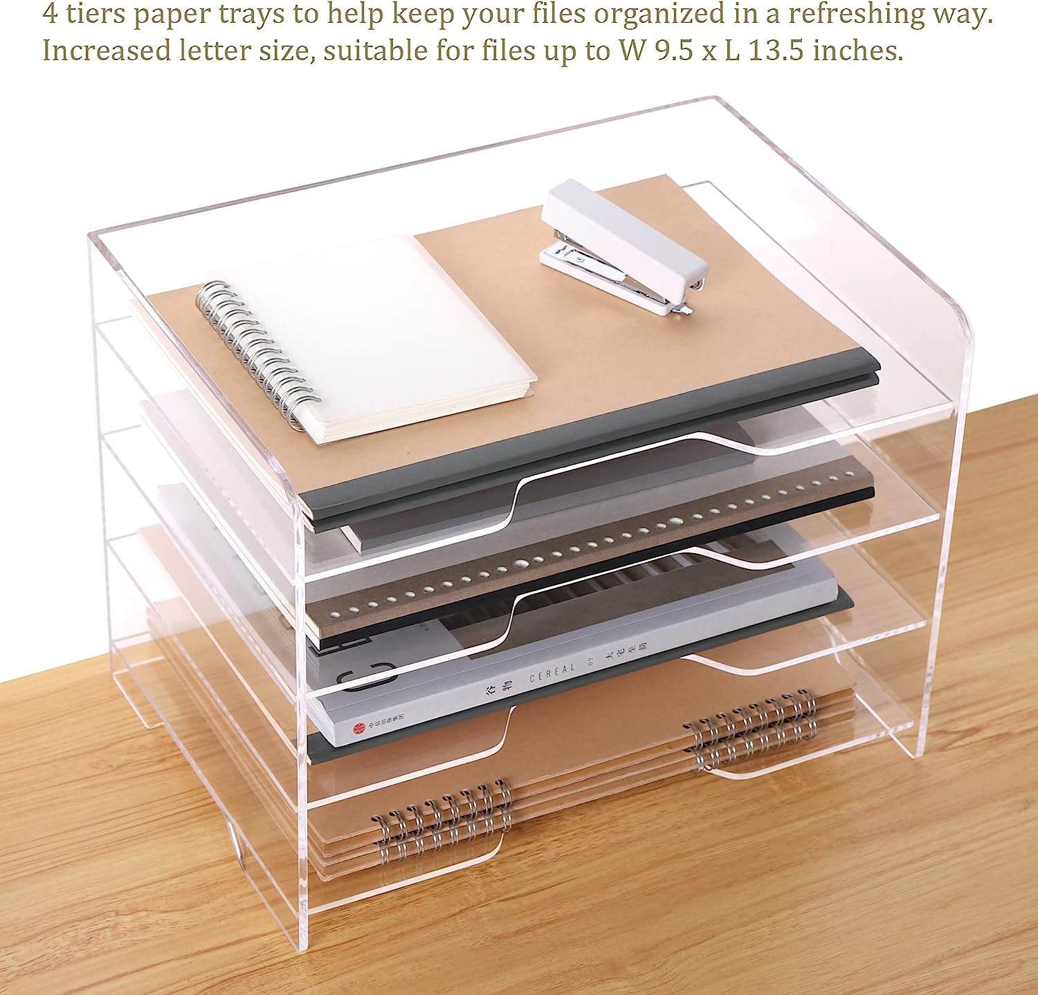 • Powerful File Storage: Use this 4 tiers paper organizer trays to help keep your files organized in a refreshing way. Clear desk Tray will do a great job with the clear material making it easy to find the information you need, the increased letter size, suitable for files up to W 9.5 x L 13.5 inches.