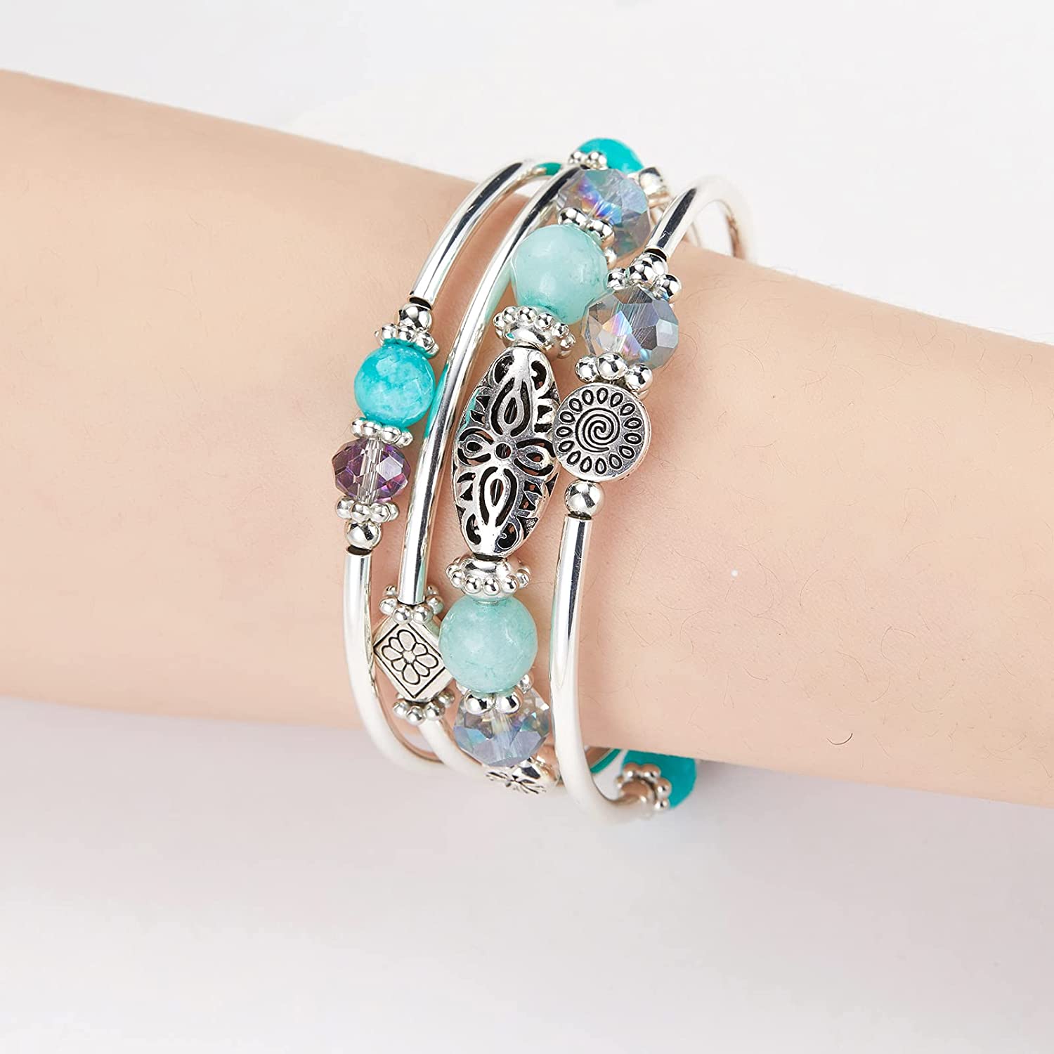 - Excellent Quality: The stackable bracelets made of High-quality environmentally friendly alloy, electroplated silver elbow and crystal glass faceted beads, etc. Exquisite workmanship, the surface texture is fresh and natural, and it has the luster of pure silver. Every piece of jewelry are all handmade by the jewelry factory. Therefore, we can carry out quality supervision well at each stage