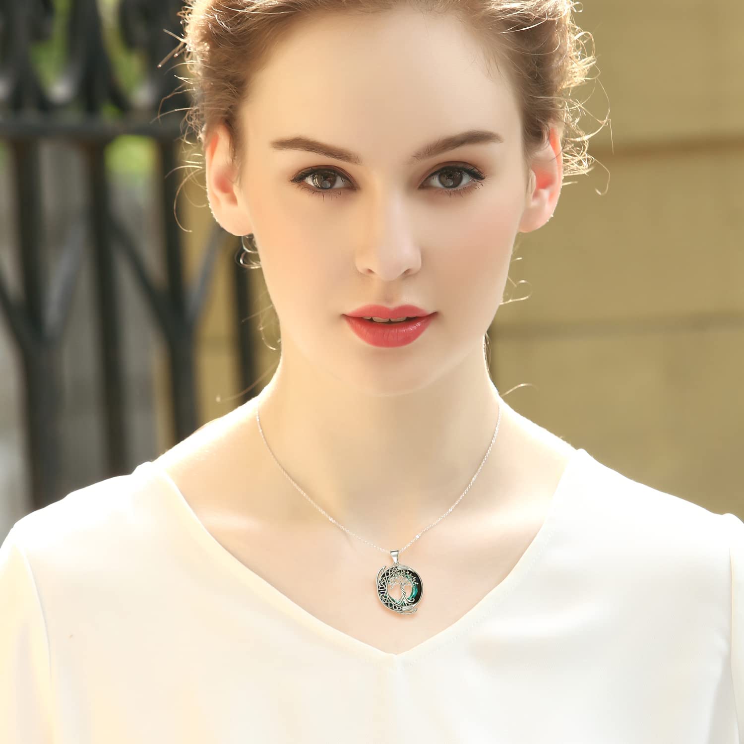 Kattepote Moon Tree of Life Necklace S925 Sterling Silver Crystal Tree of Life Pendant Necklace Celtic Knot Full Moon Tree of Life Women's Jewellery Gift