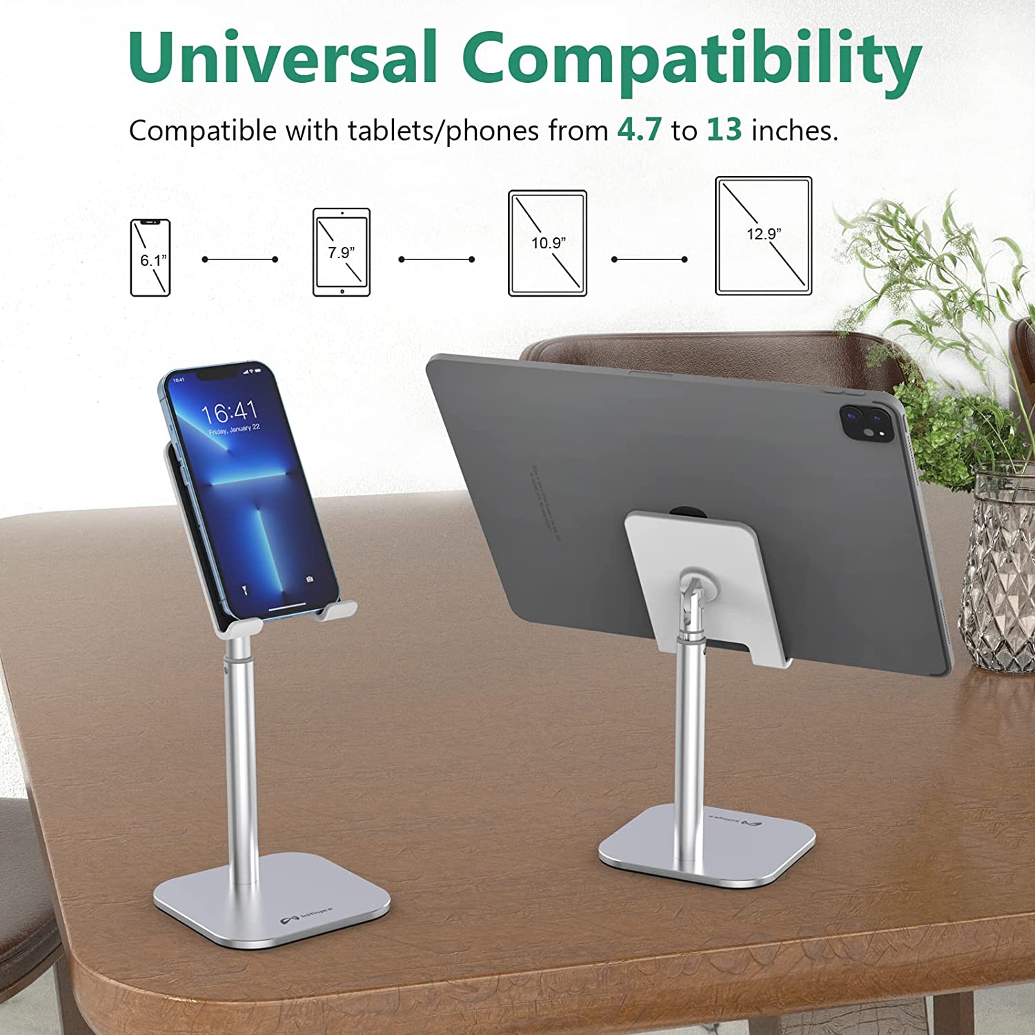 • 【Wider Compatibility】 Desktop tablet stand holder is compatible with 4.7''-13'' screen cellphones and tablets, Such as such as new 2020 iPad Pro 11 / 12.9, iPad Air 4, 2018 iPad Pro 9.7 / 10.5, iPad Air mini, Microsoft Surface Pro series, Kindle Paper white, Fire HD 7 8 10, E-reader, Samsung Galaxy Tab series and more.