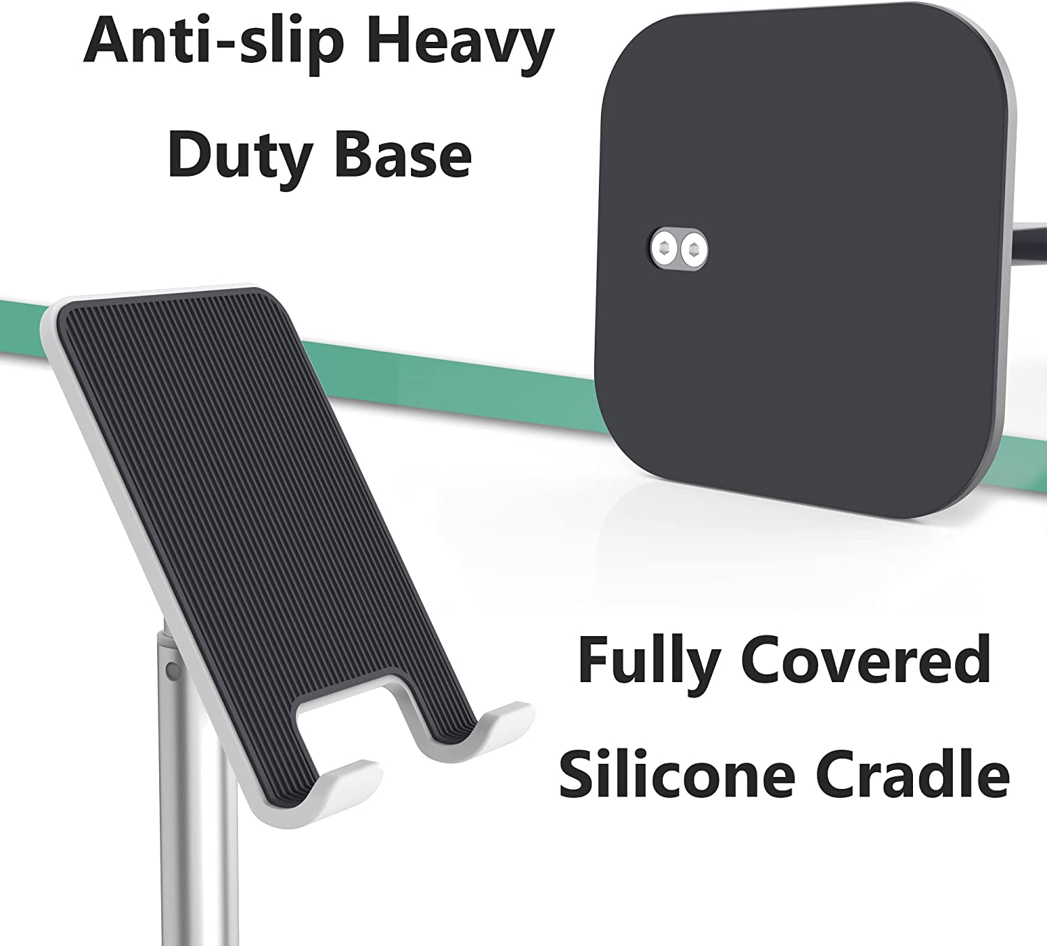 • 【Reserved Charging Hole & Rubber Cushions】 There is a reserved charging hole convenient for you to charge your devices while using iPad stand for desk. The fully covered silicone cradle and anti-slip heavy duty base provide full protection for your device from any scratches and slide.
